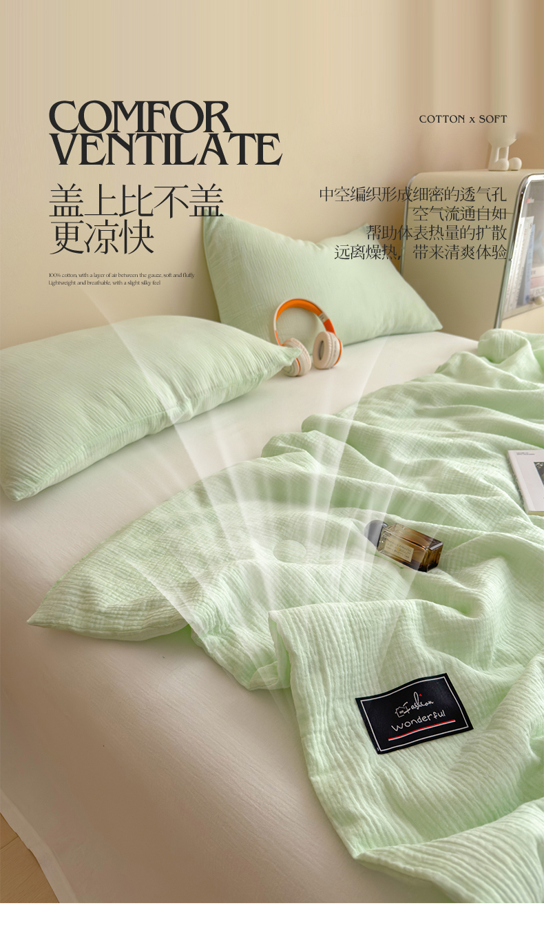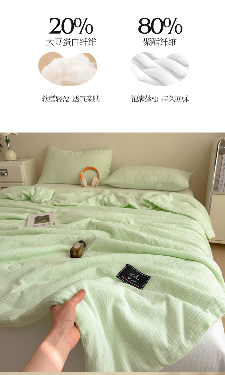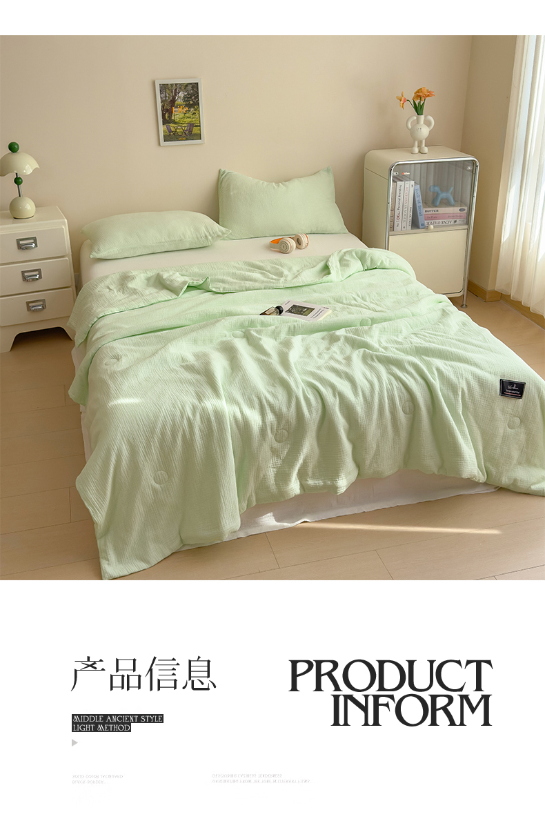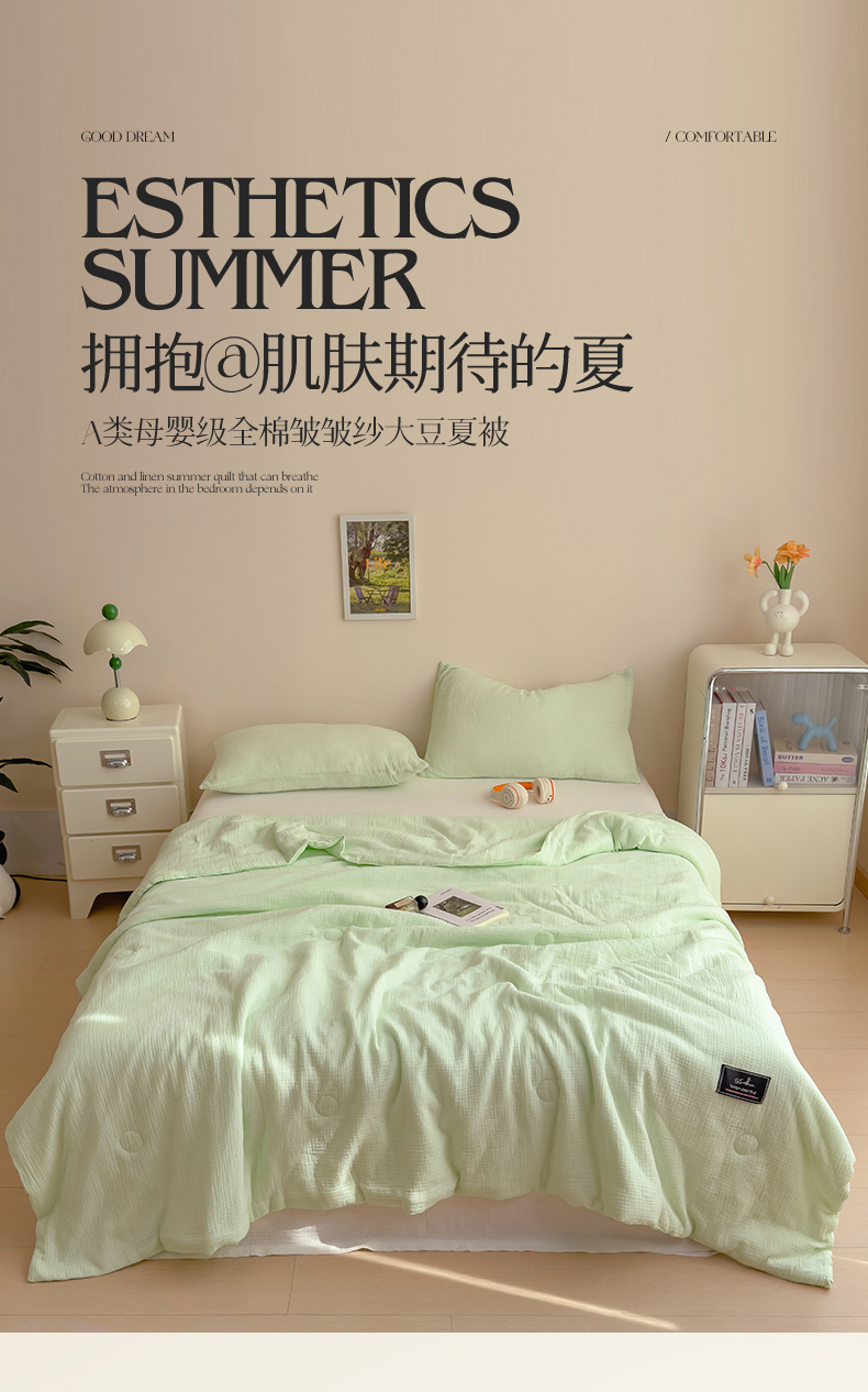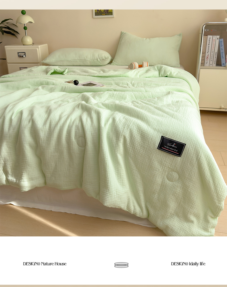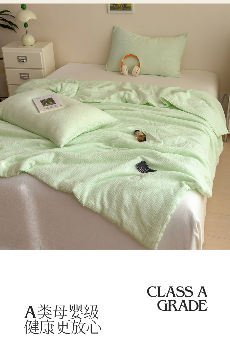 商品名称:(总)沐珩家纺 2026新款A类母婴级全棉皱皱纱大豆夏被纯色夏凉被