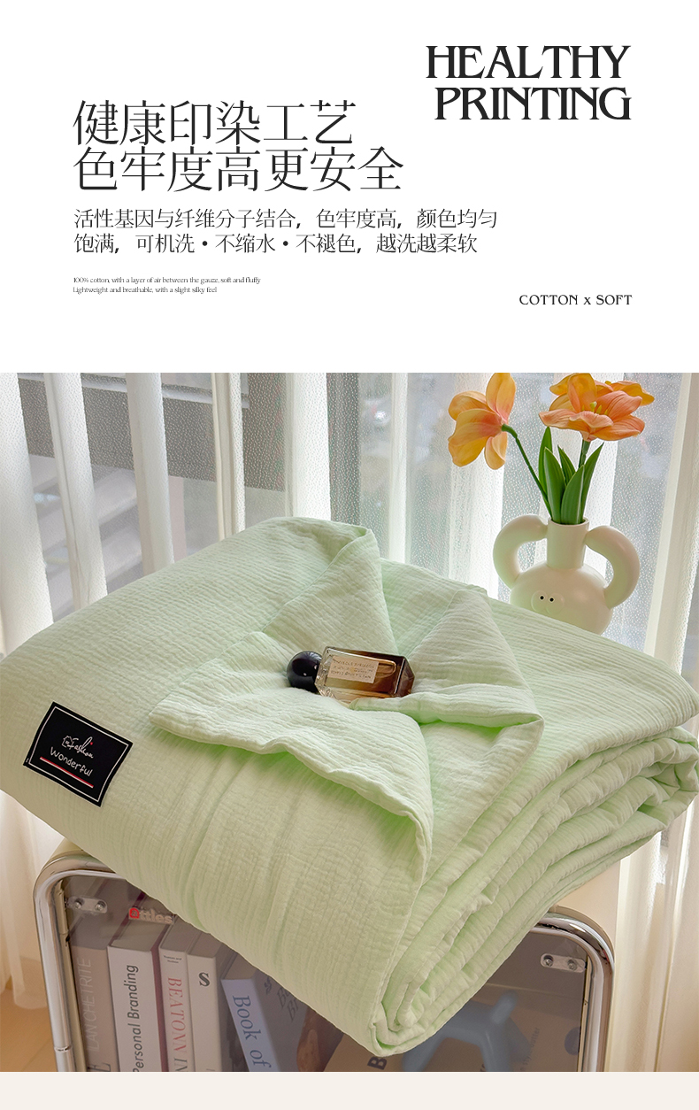 (总)沐珩家纺 2026新款A类母婴级全棉皱皱纱大豆夏被纯色夏凉被
