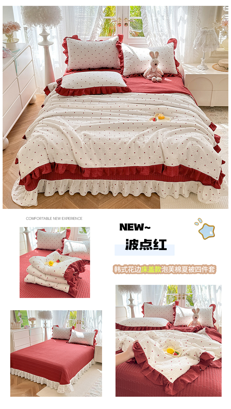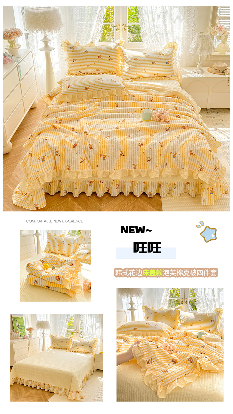 (总)韩约家纺 2026春夏新款韩式花边泡芙棉床单款夏被夏凉被空调被四件套,奶油泡芙,安暖如夏,宝妮,波点红,花春城,马上有钱,苏糖咖,旺旺,微花耳耳,星梦伙伴,星星人,紫色心情