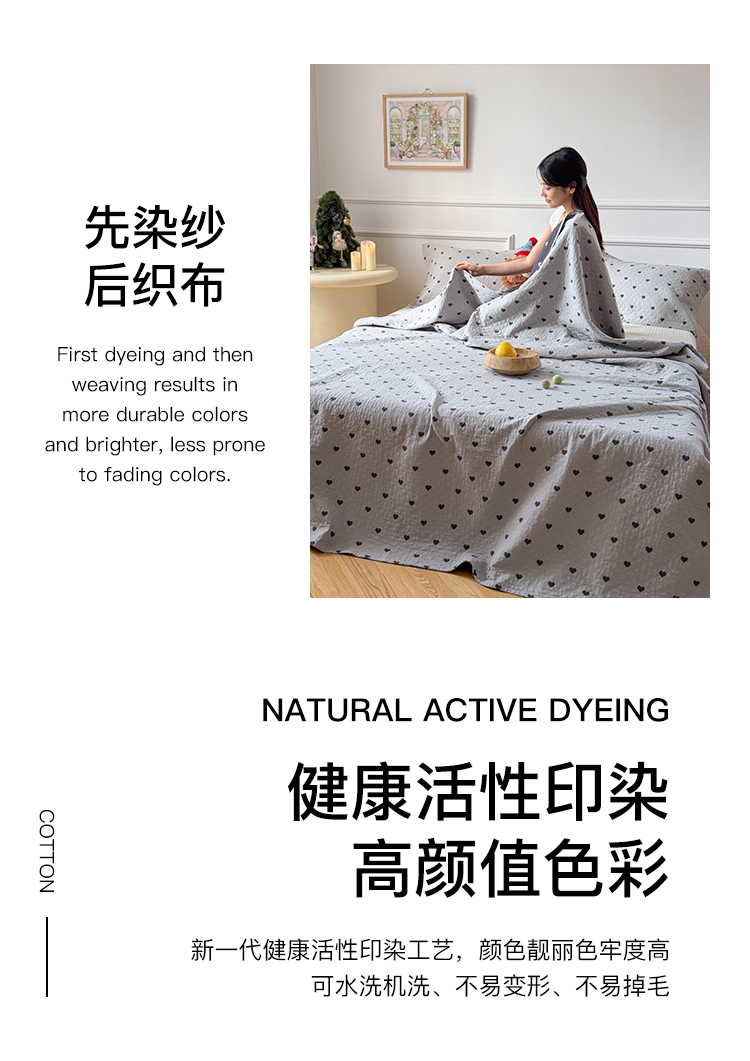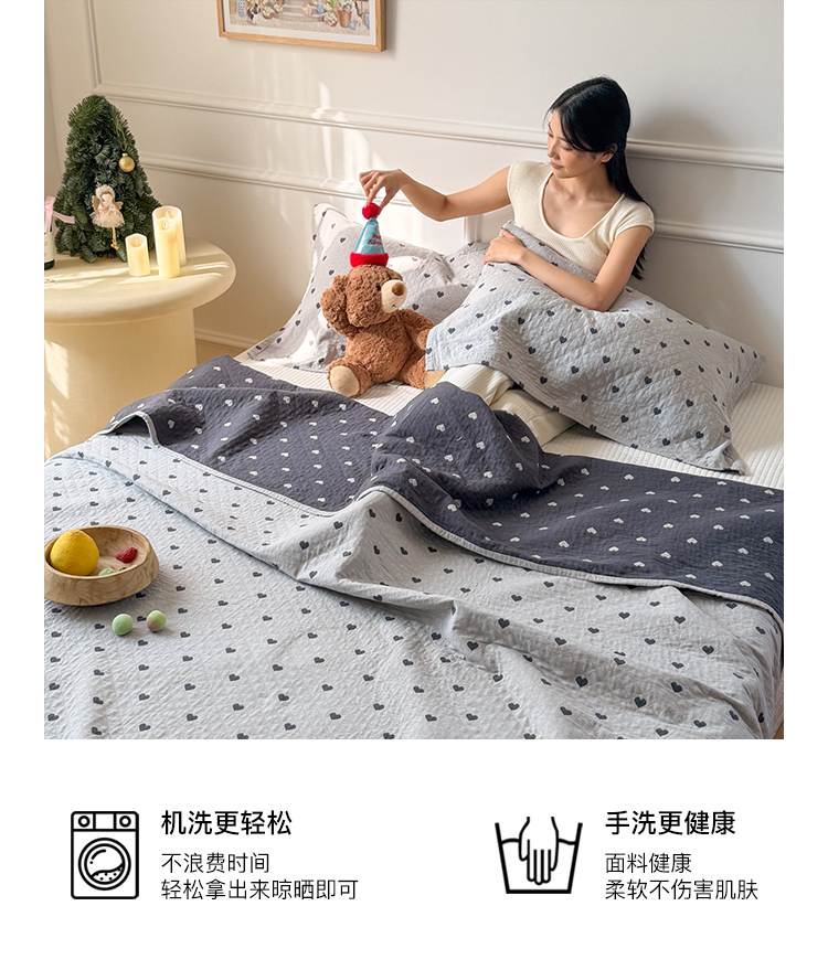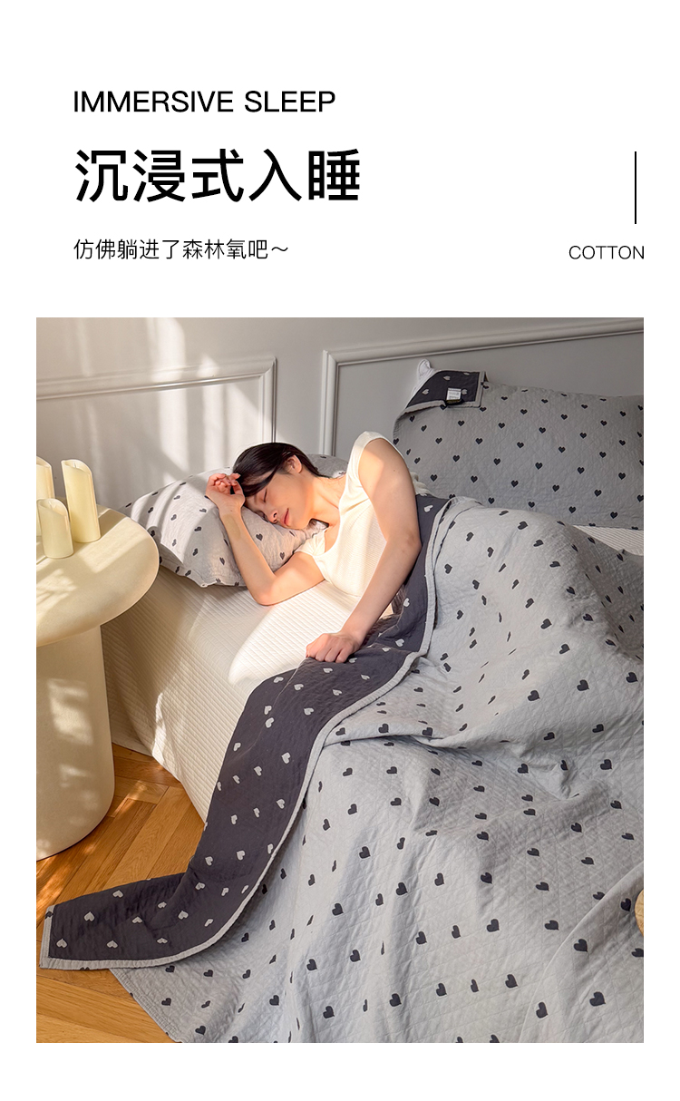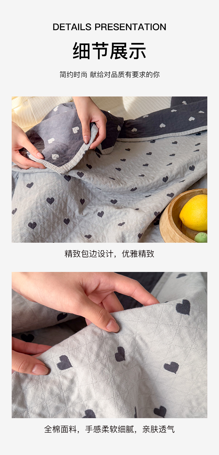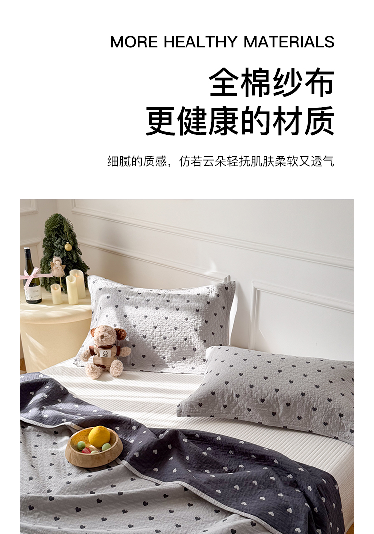 沐瑟家纺 2026春夏新款安心棉床盖三件套 心情-灰蓝
