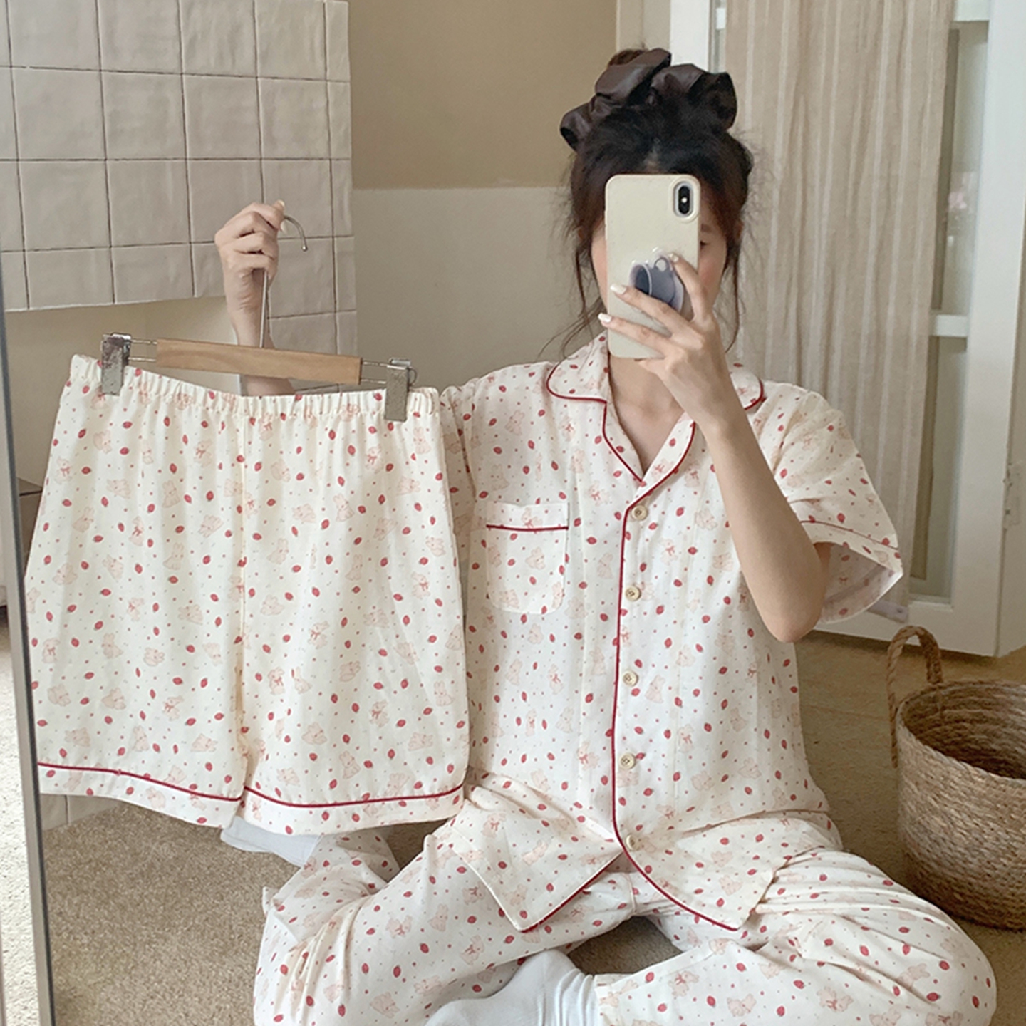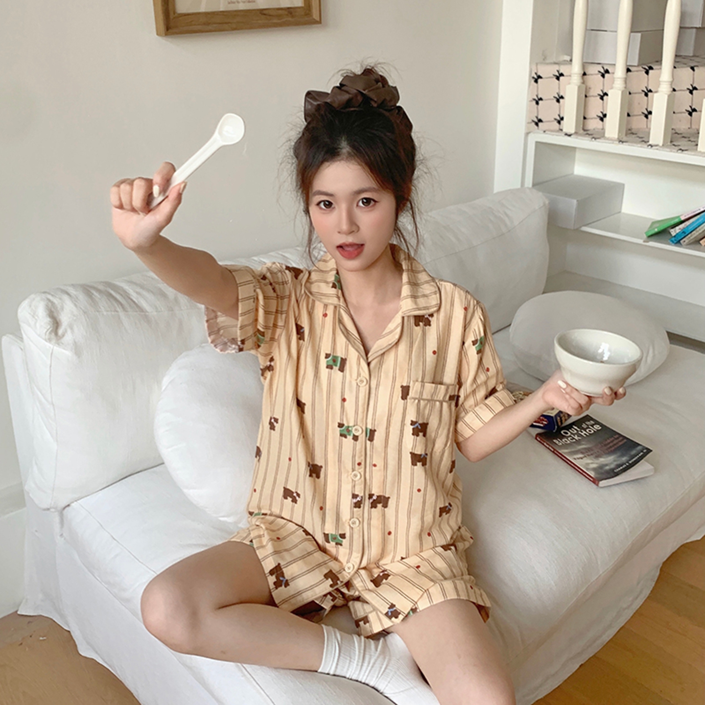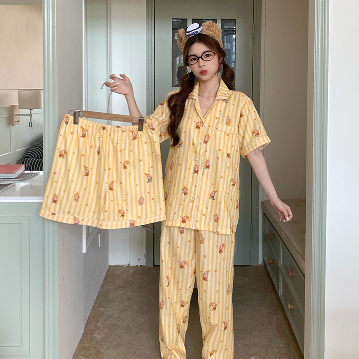 商品名称:爱思佳 2026新款全棉纯棉双层纱短袖睡衣系列 萌星
