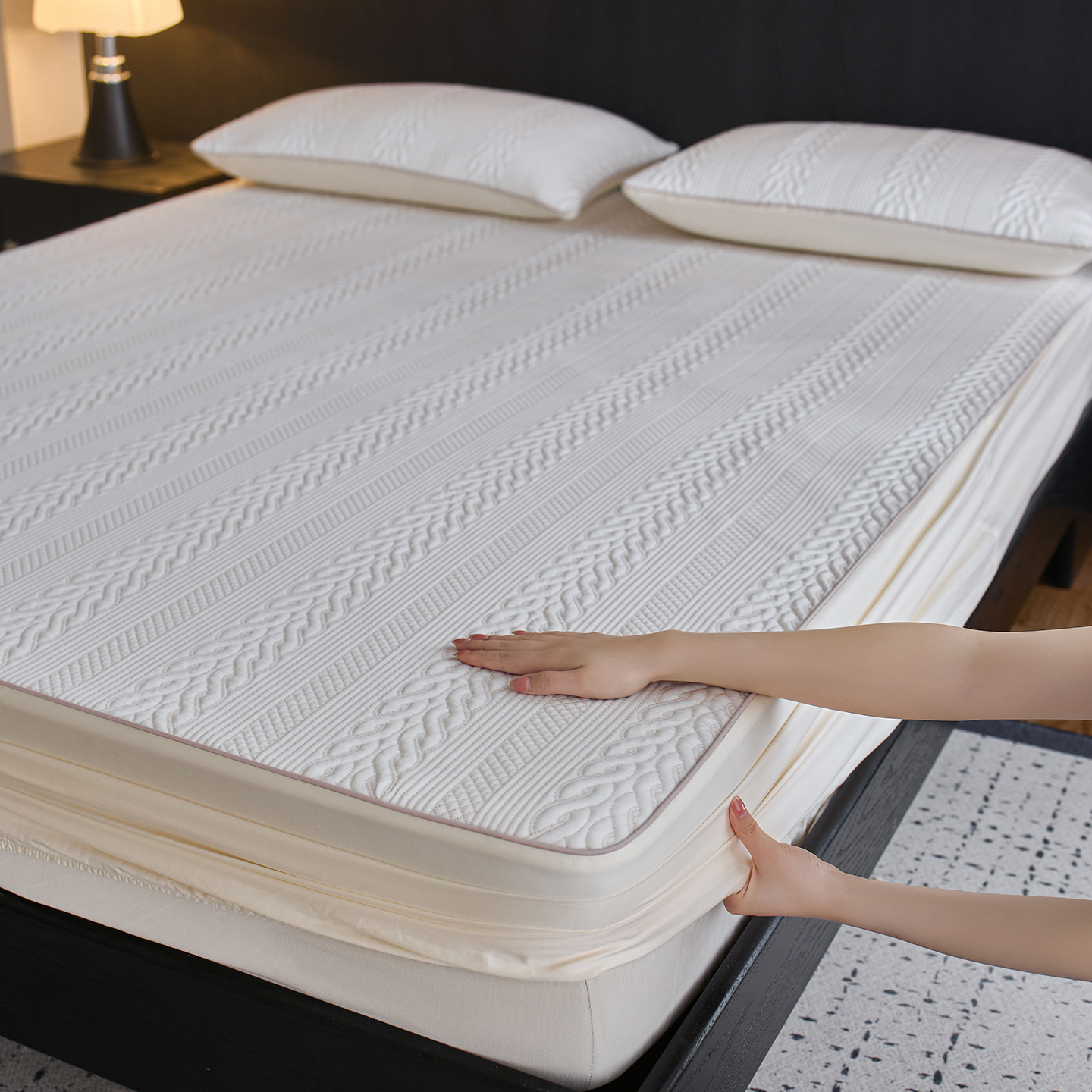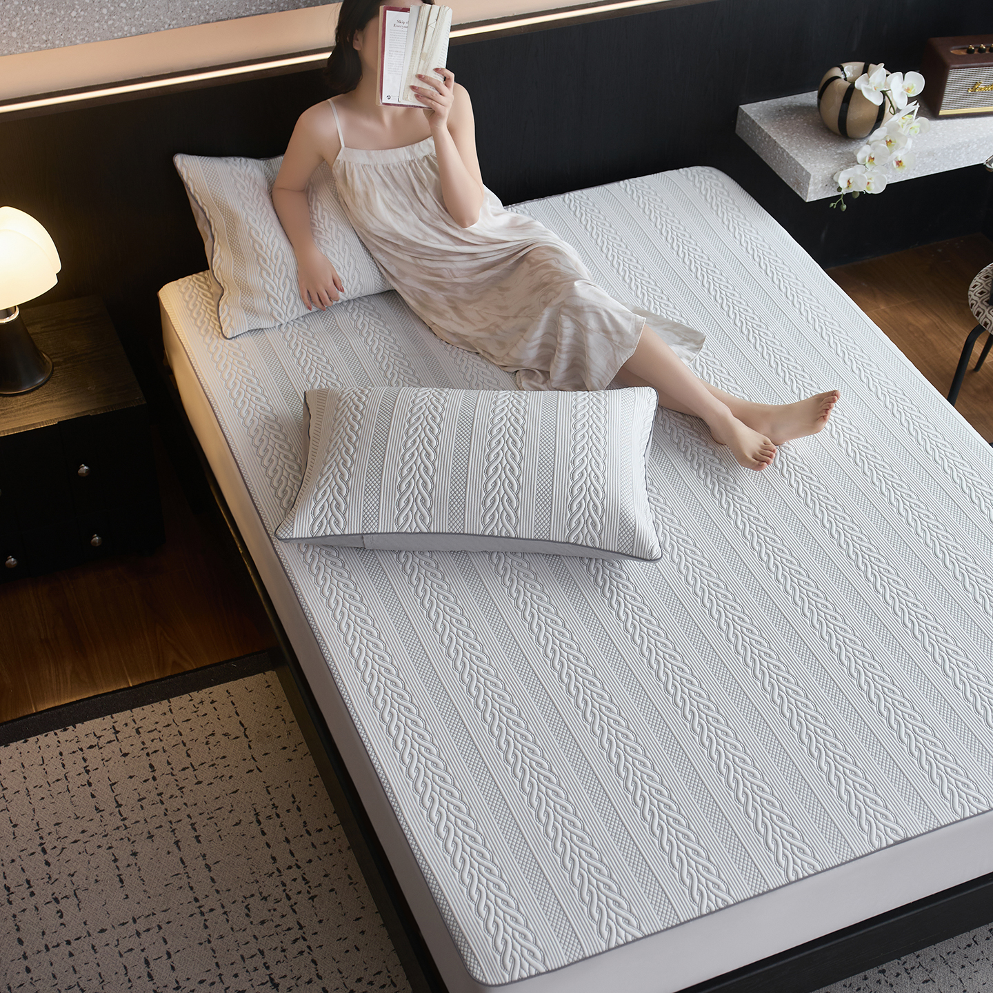 (总)安莱生活 2026新款A类“冰糕”高分子PE550D床笠款(含银丝款)三件套凉席-第一批,菱格,缦纱,斜屿,斜屿-灰,云缦,组合图仅供展示不可下单