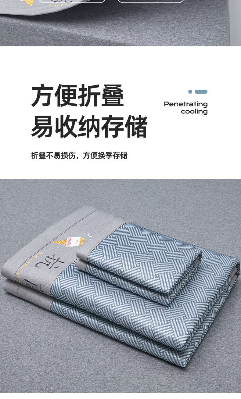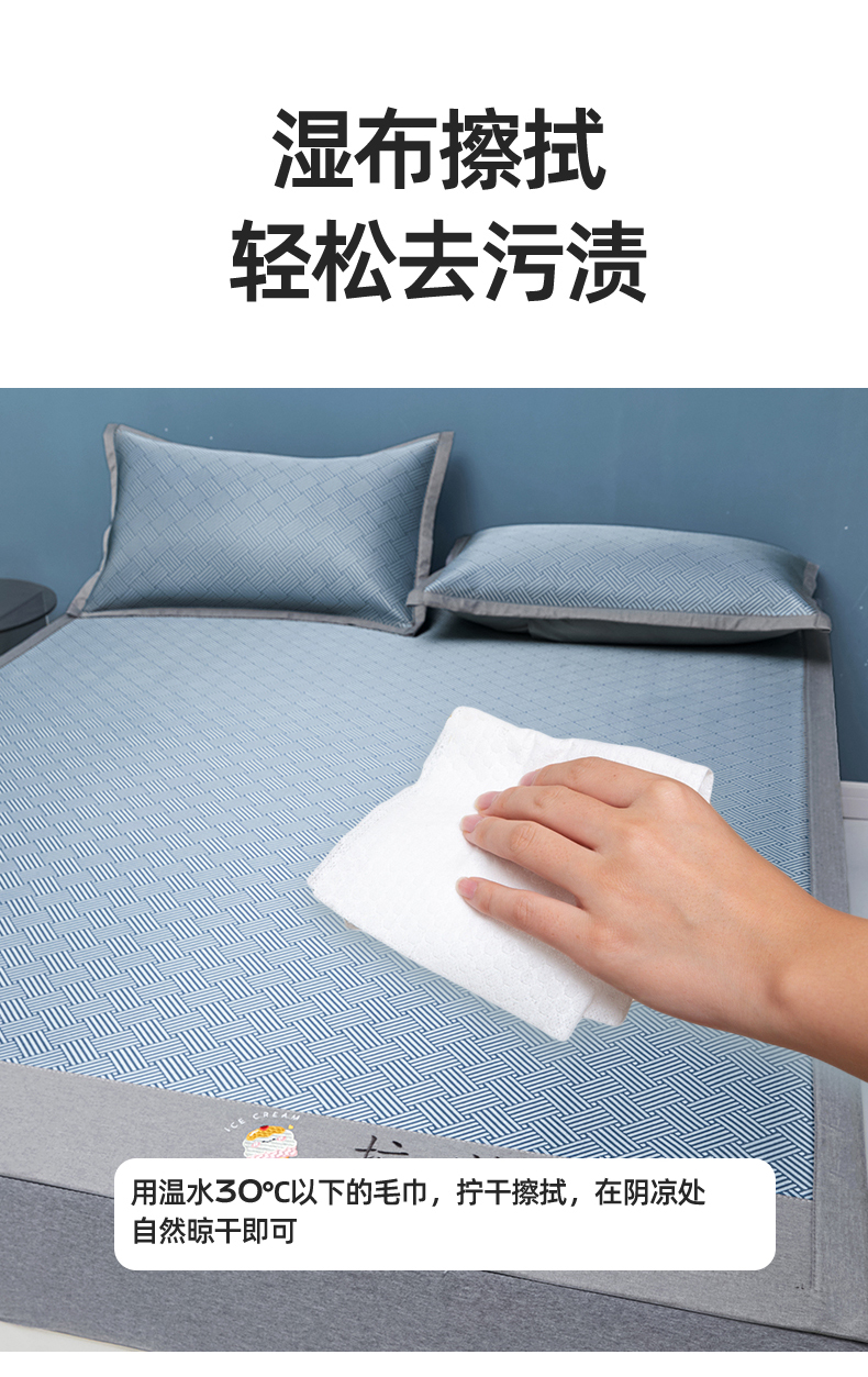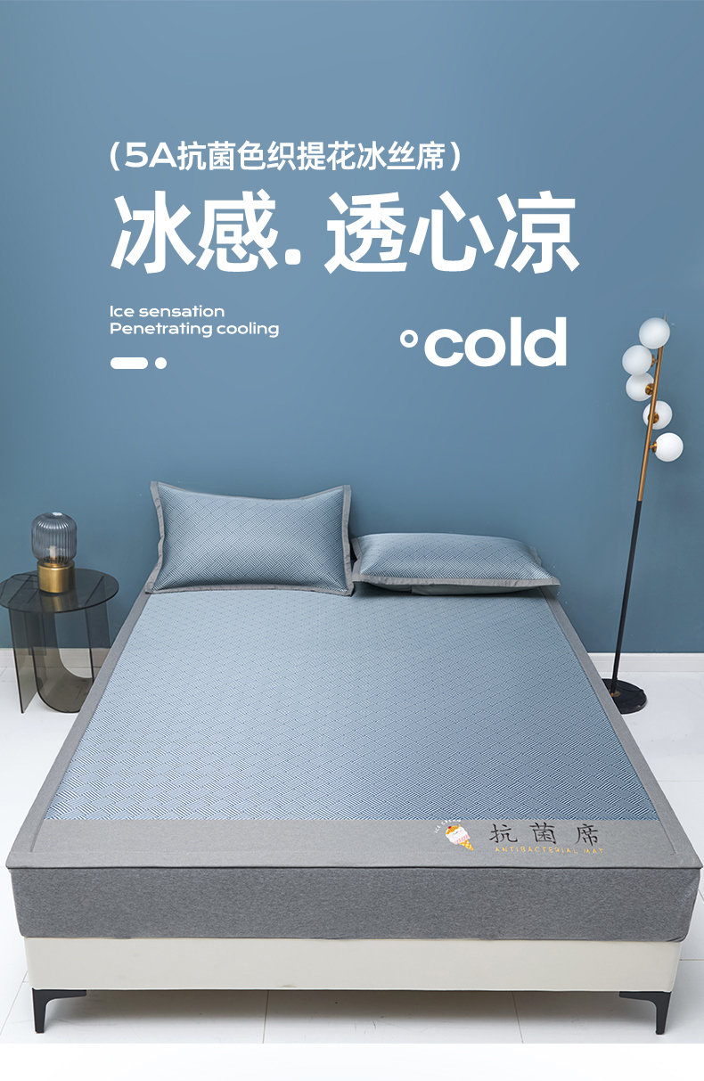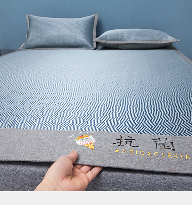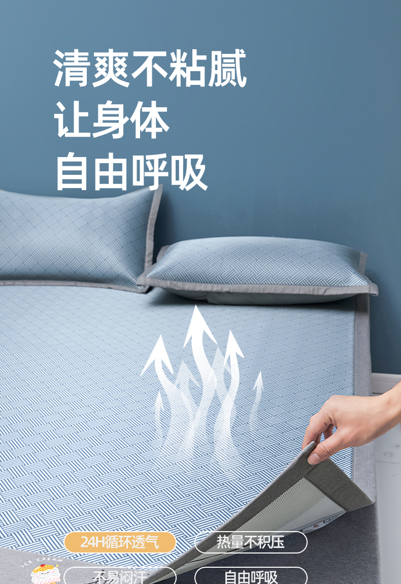 色鬼布艺高端家居主号 2026新款抗菌冰激凌色织提花床单款床席冰丝席席子凉席 冰激凌-深蓝