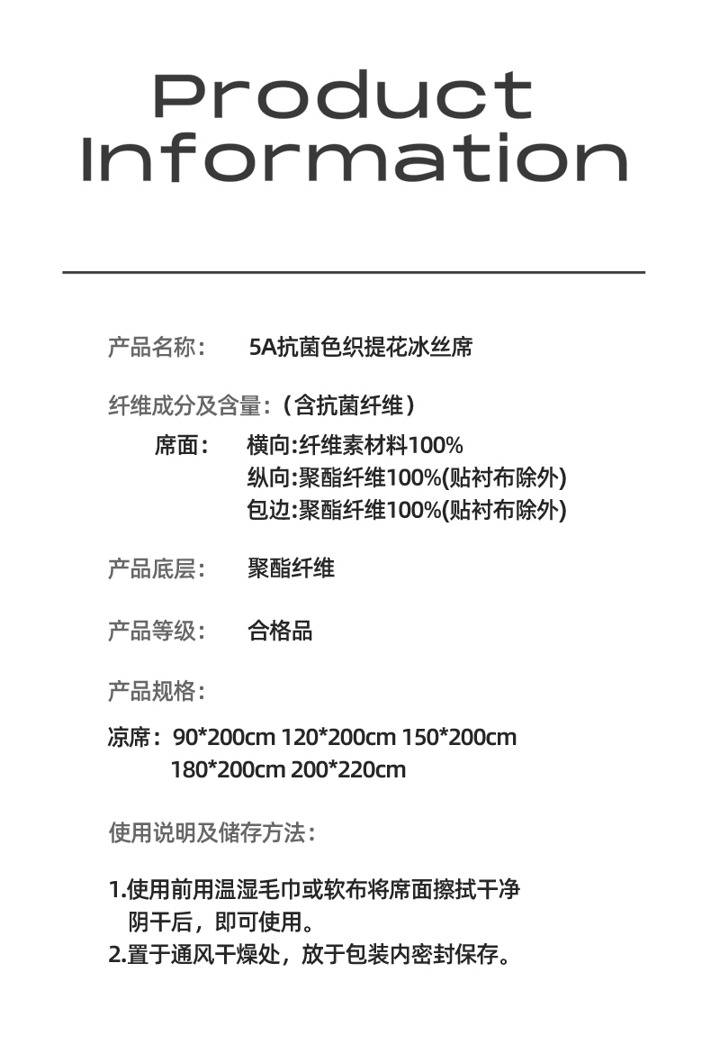 180x200cm凉席+枕套一对