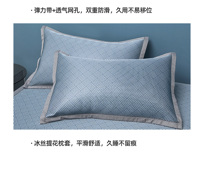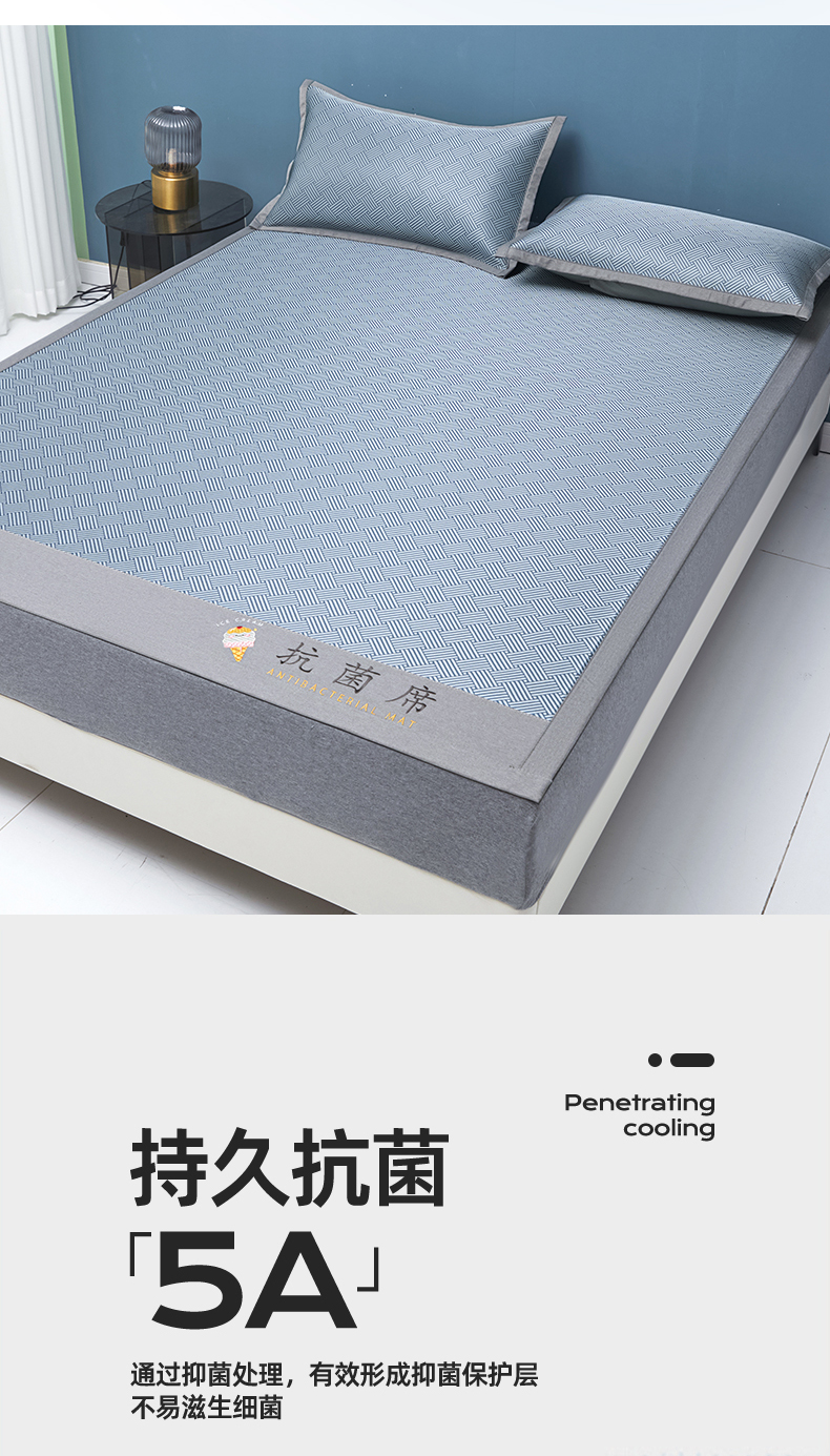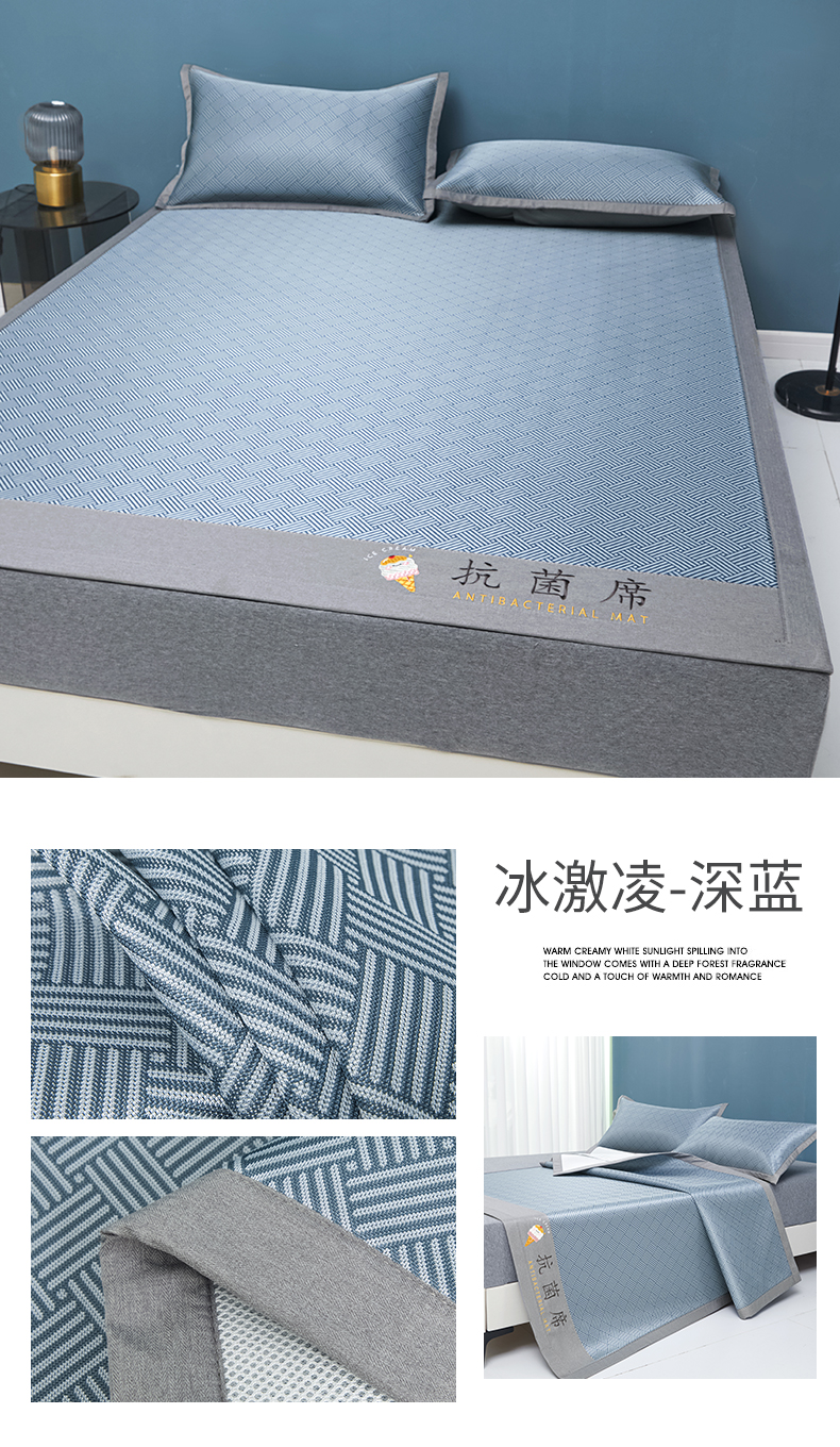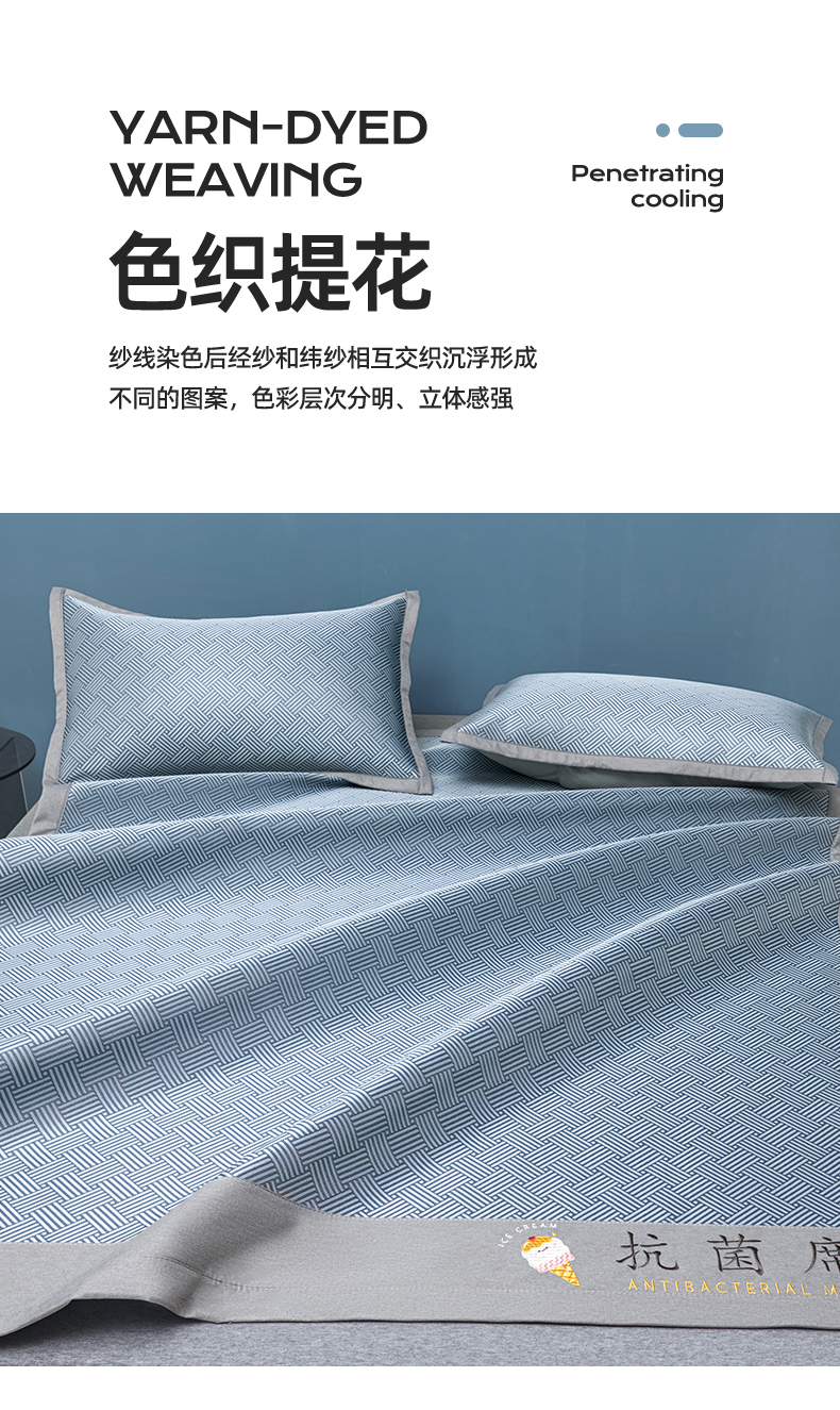 商品名称:色鬼布艺高端家居主号 2026新款抗菌冰激凌色织提花床单款床席冰丝席席子凉席 冰激凌-深蓝