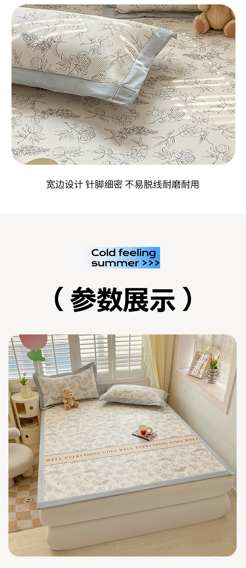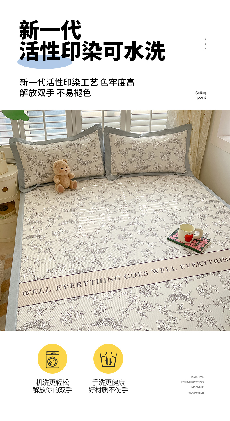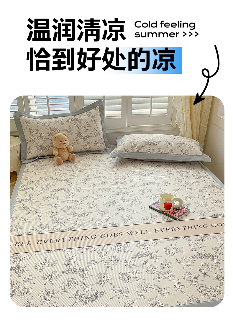 商品名称:女子家纺 2026新款大斜纹复合冰丝凉席-床席款 午后茶花