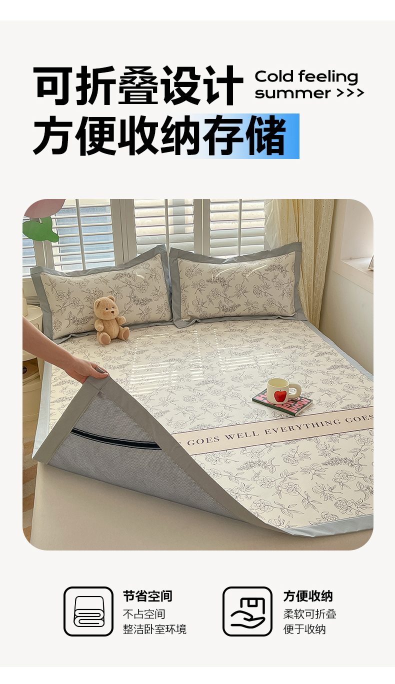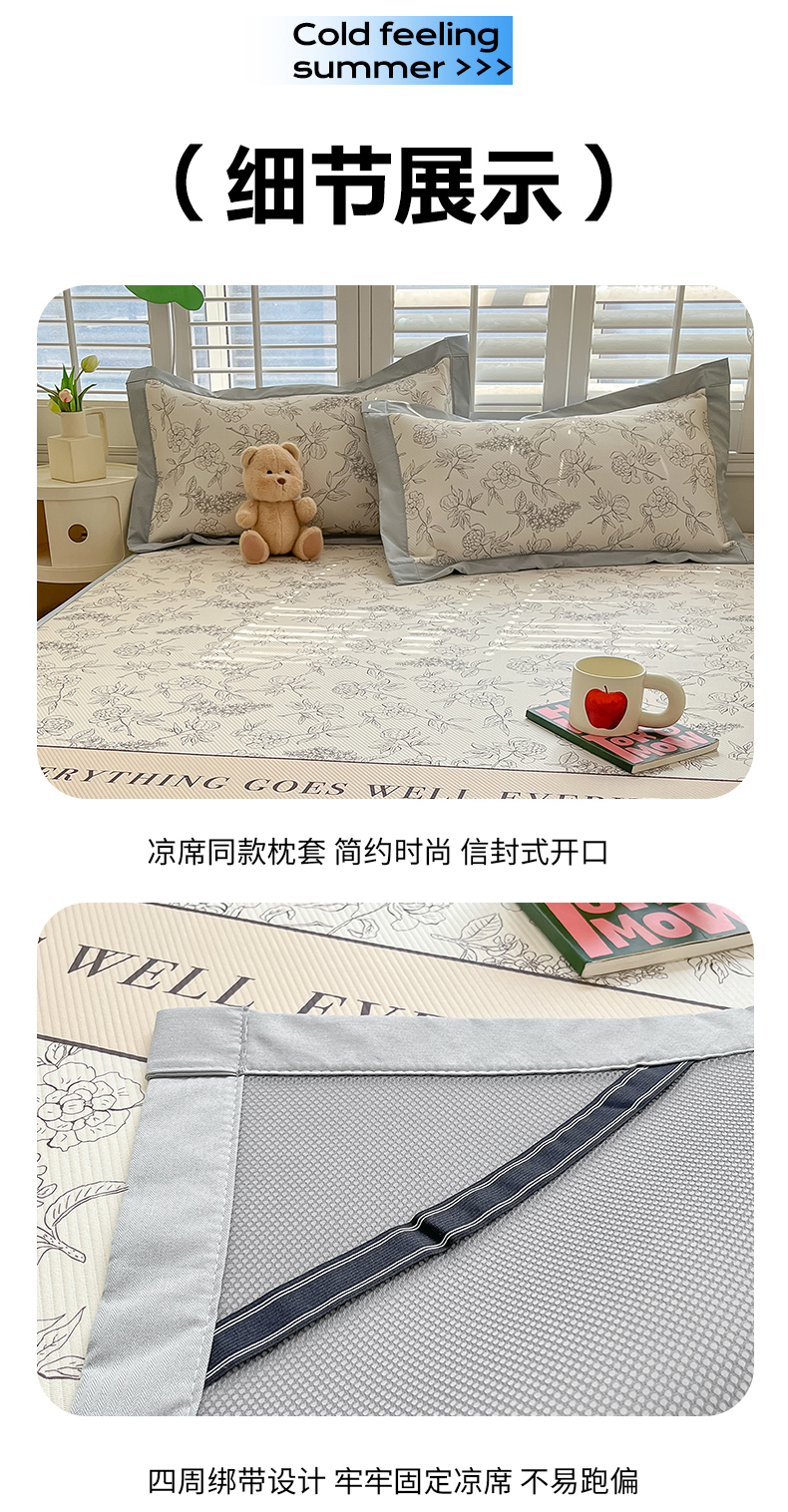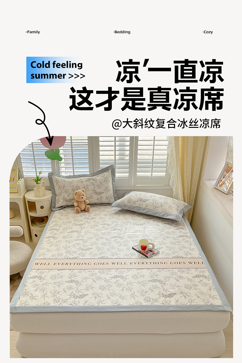 女子家纺 2026新款大斜纹复合冰丝凉席-床席款 午后茶花