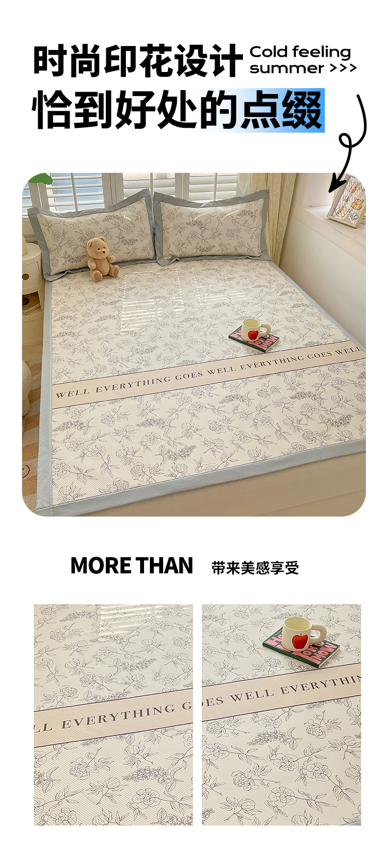 (总)女子家纺 2026新款大斜纹复合冰丝凉席-床席款,爱心气泡粉,萌熊印象,奶油草莓,拈花湾兰,七彩龙,奇妙幻想,水木年华,午后茶花,悠悠小元,尤克里里粉