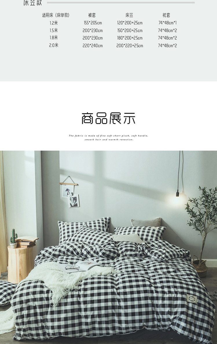 商品名称:(总)菊上家纺 2018-秋冬保暖绒-条格风四件套床笠款