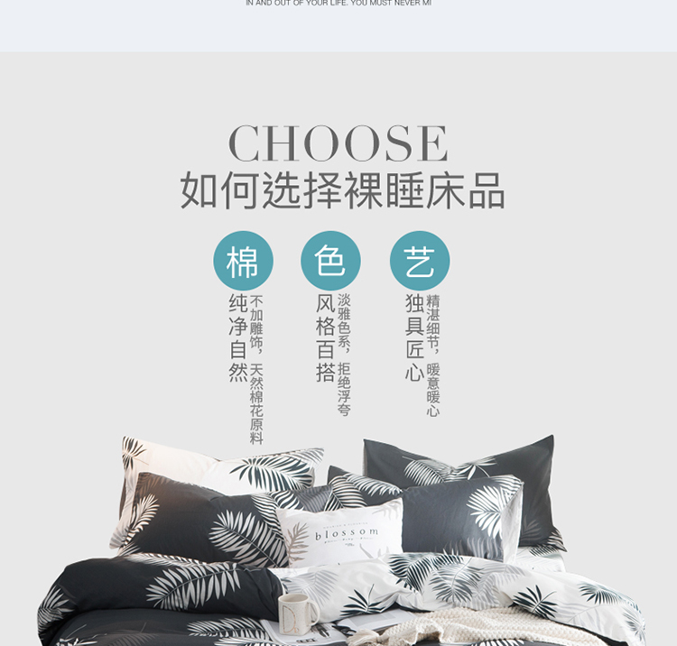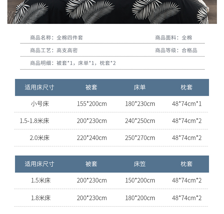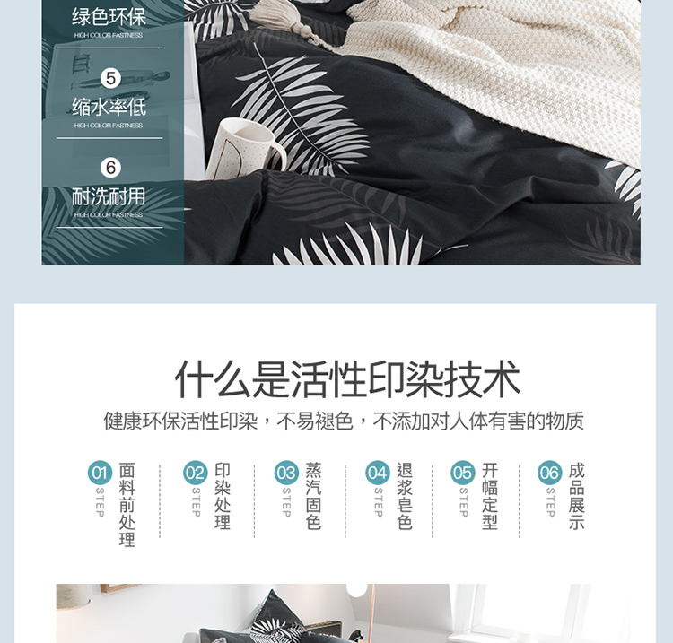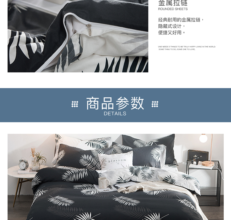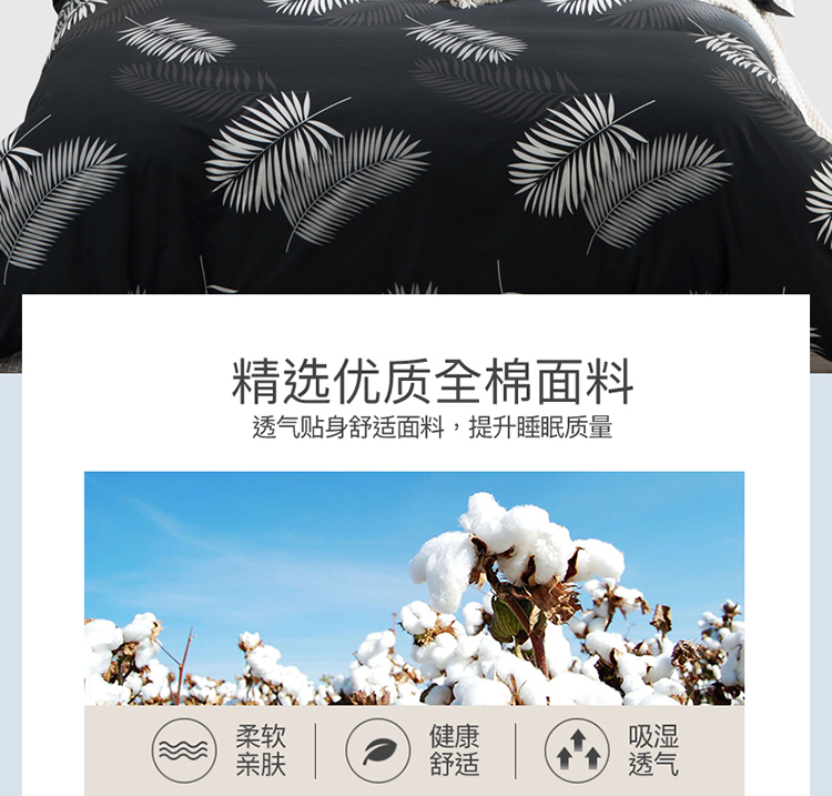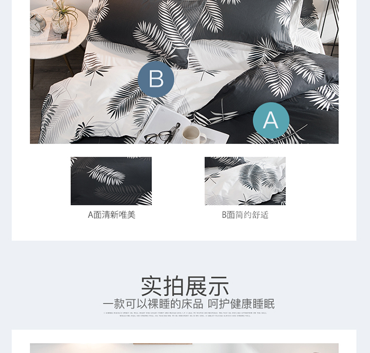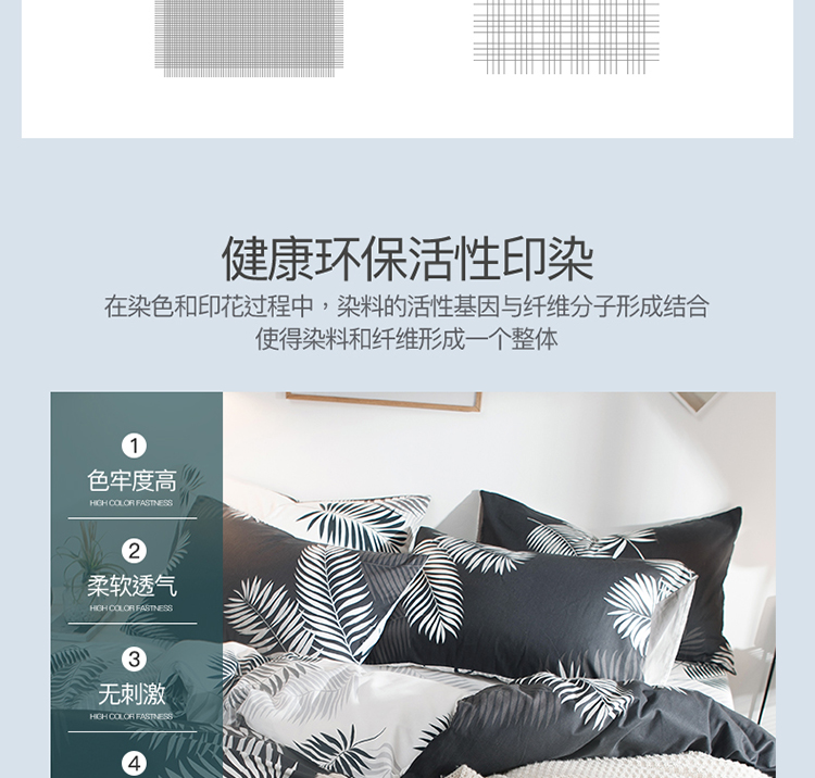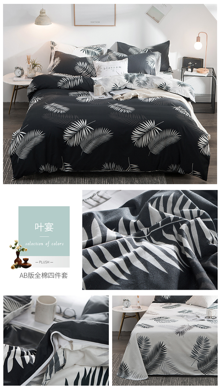 商品名称:琪格格 2018新品AB版小清新全棉四件套 叶宴