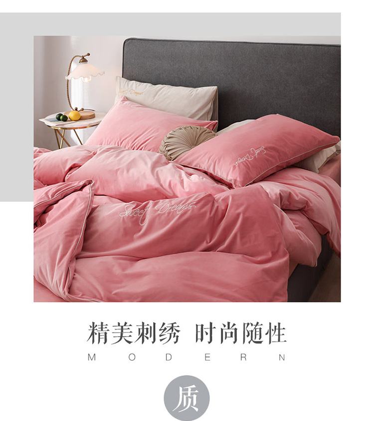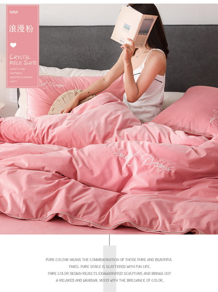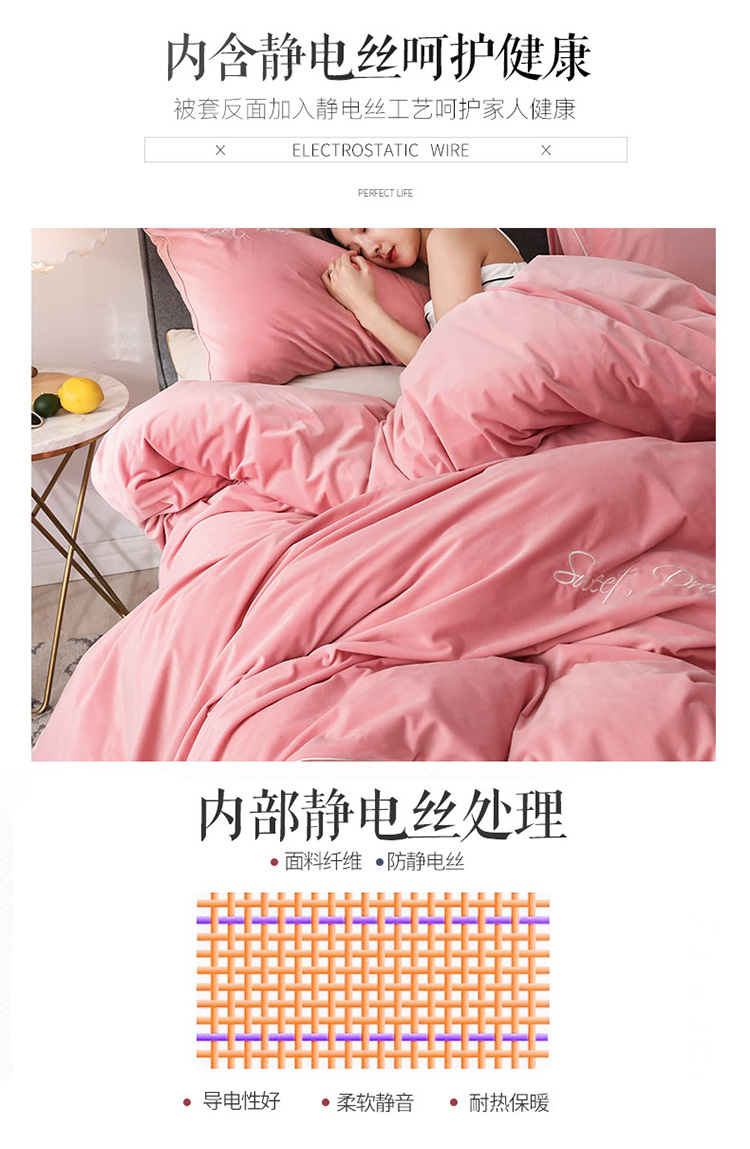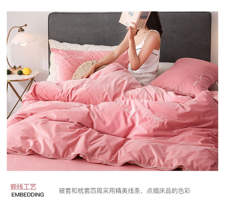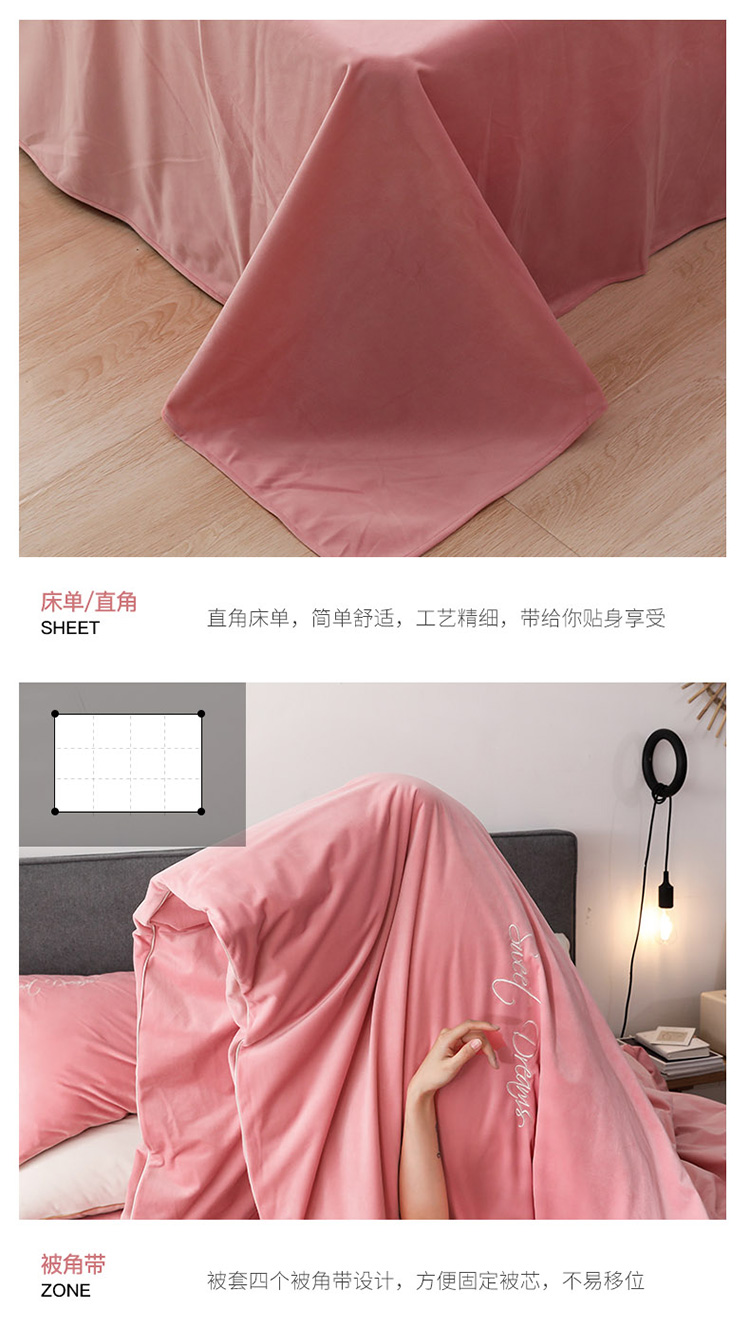 商品名称:爱缦 2019新款水晶绒丽丝绒绣花工艺款四件套 浪漫粉