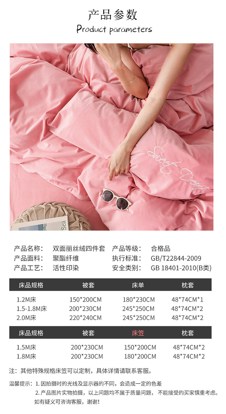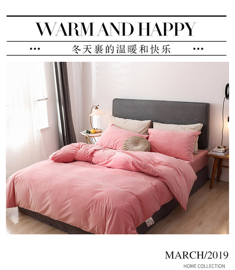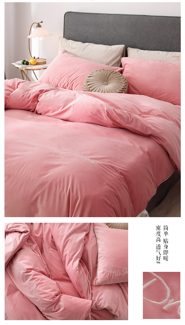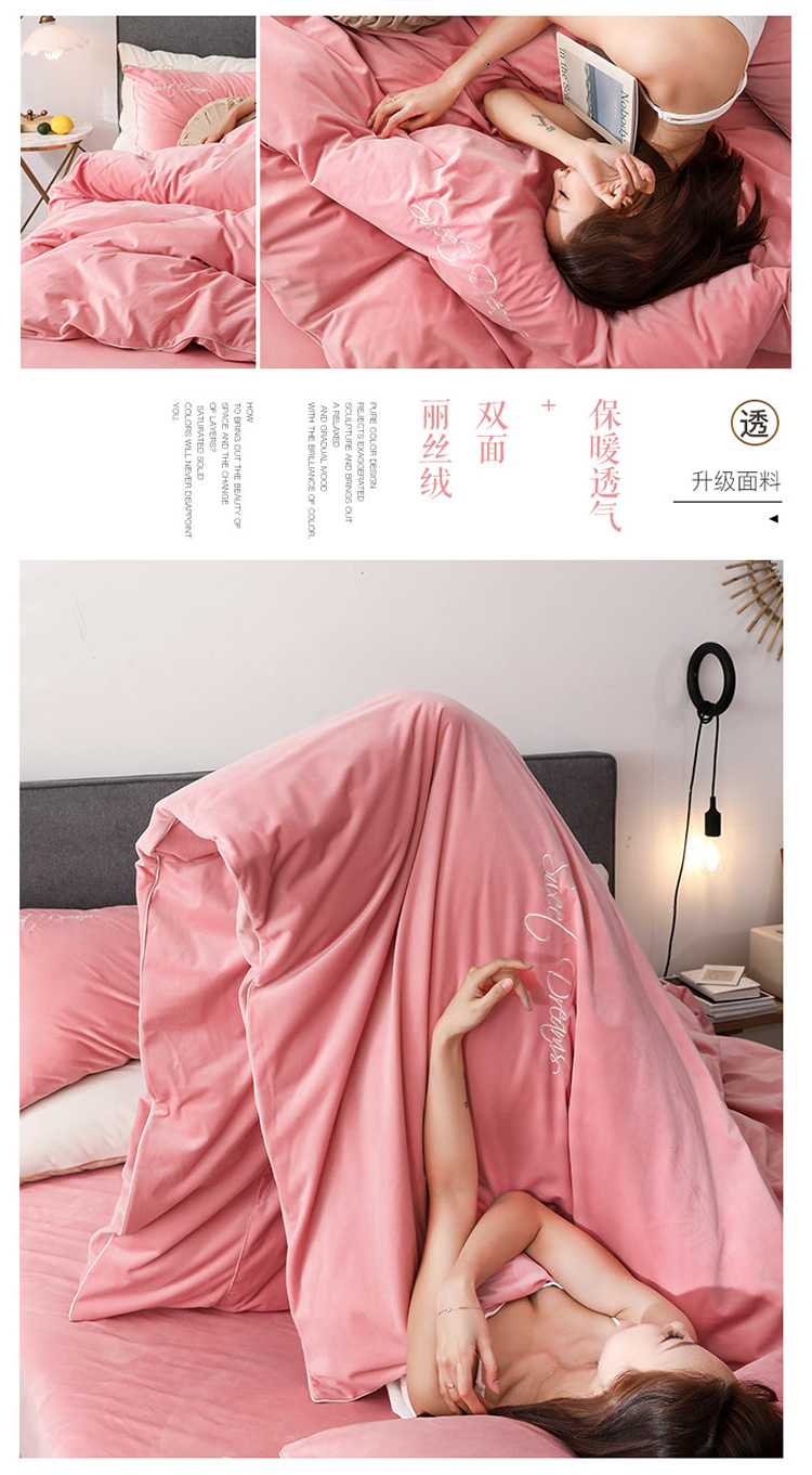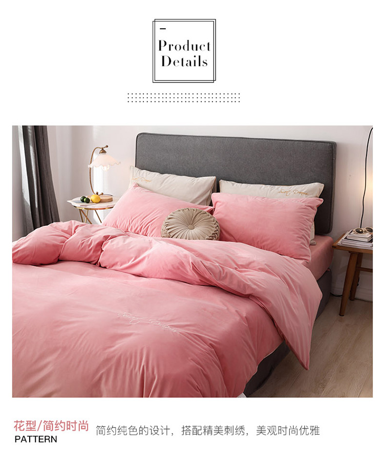 商品名称:爱缦 2019新款水晶绒丽丝绒绣花工艺款四件套 浪漫粉