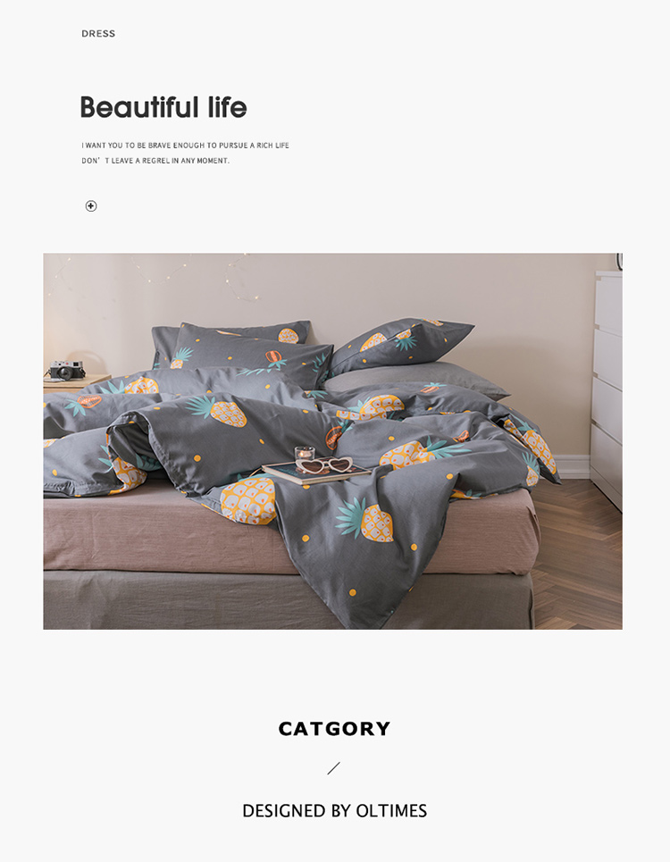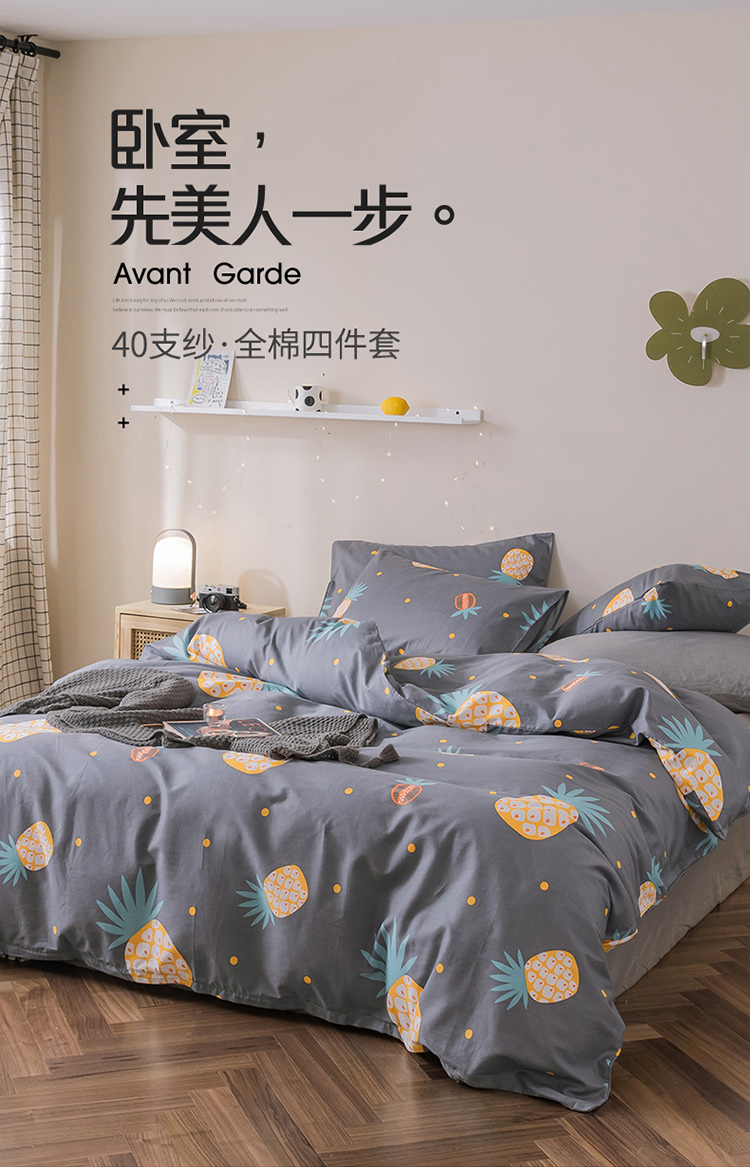 商品名称:珺柔家纺 2019新款13372全棉四件套 橙色菠萝