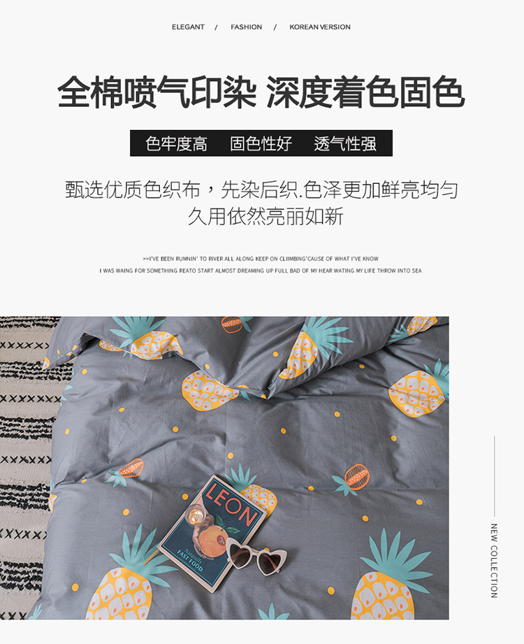 珺柔家纺 2019新款13372全棉四件套 橙色菠萝