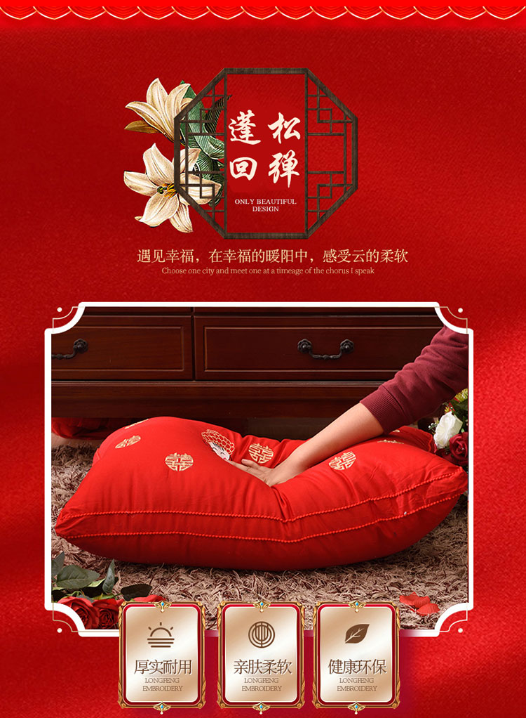 当前位置: 91家纺网 > 商品网购 > 枕头/枕芯/保健枕/颈椎枕 > 普通枕芯 > 九州枕芯 2020年新款羽丝枕 大红婚庆-两情相悦羽丝枕