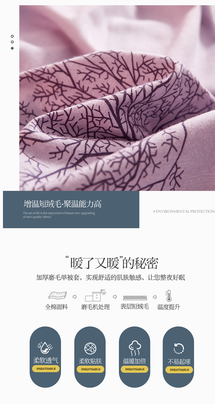 商品名称:雲归梦 2020新款多规格全棉加厚磨毛单被套 幸福树