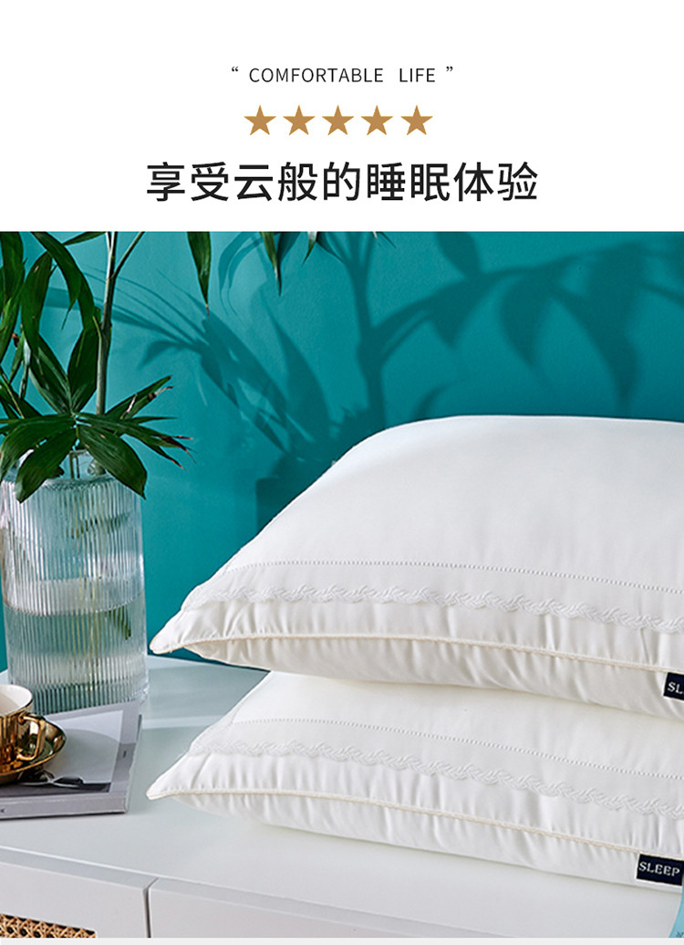 赛格时代家居 枕头全棉立体绗缝酒店枕芯,乳白色