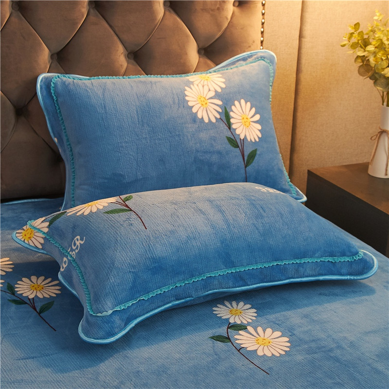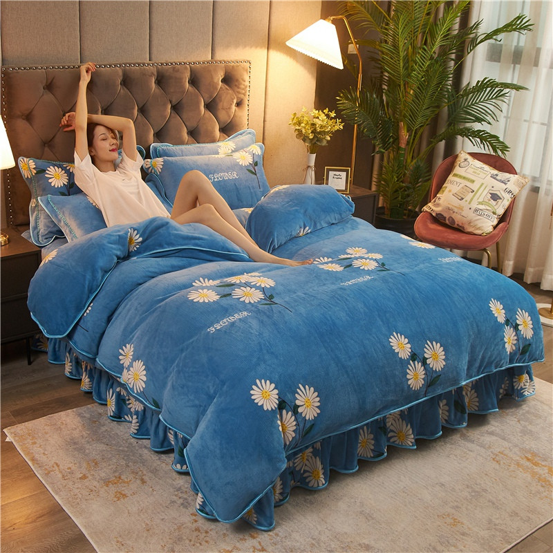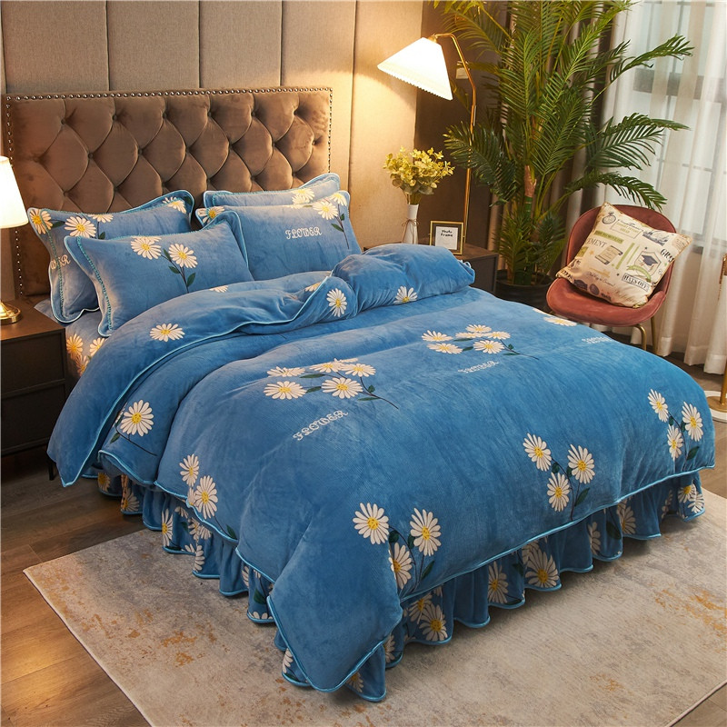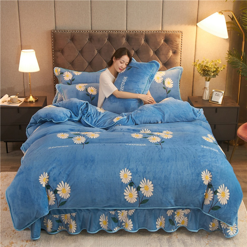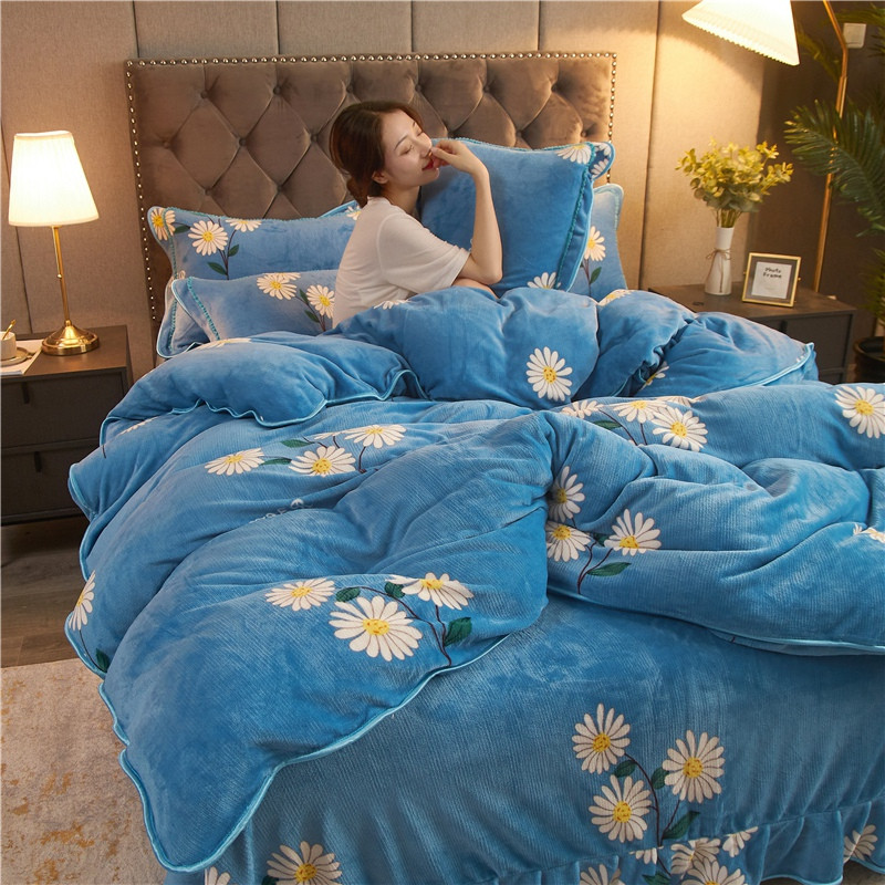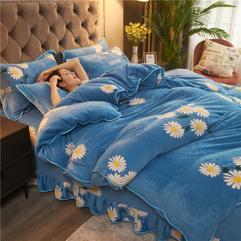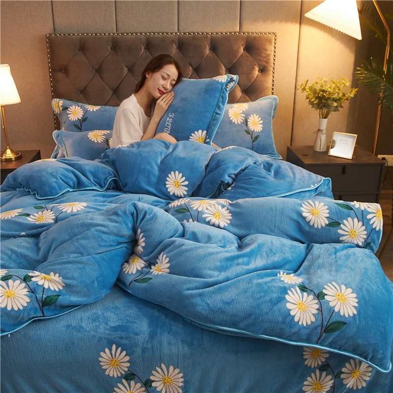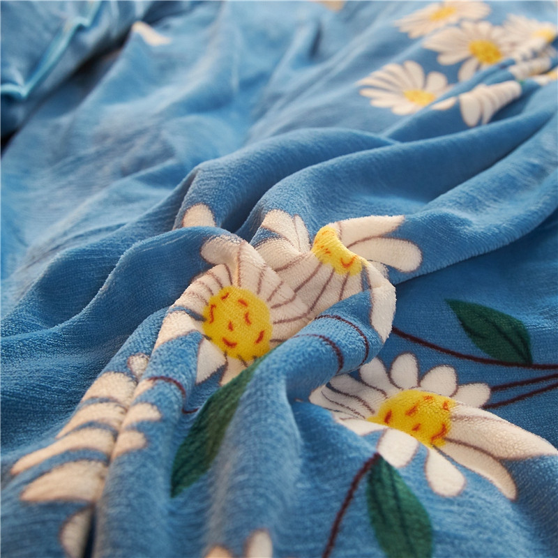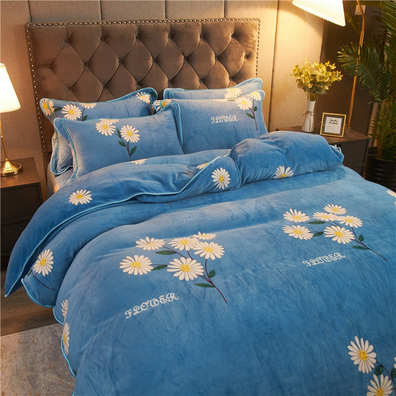 爱洛牛奶绒宝宝绒水晶绒法莱绒金貂绒四件套 菊花蓝