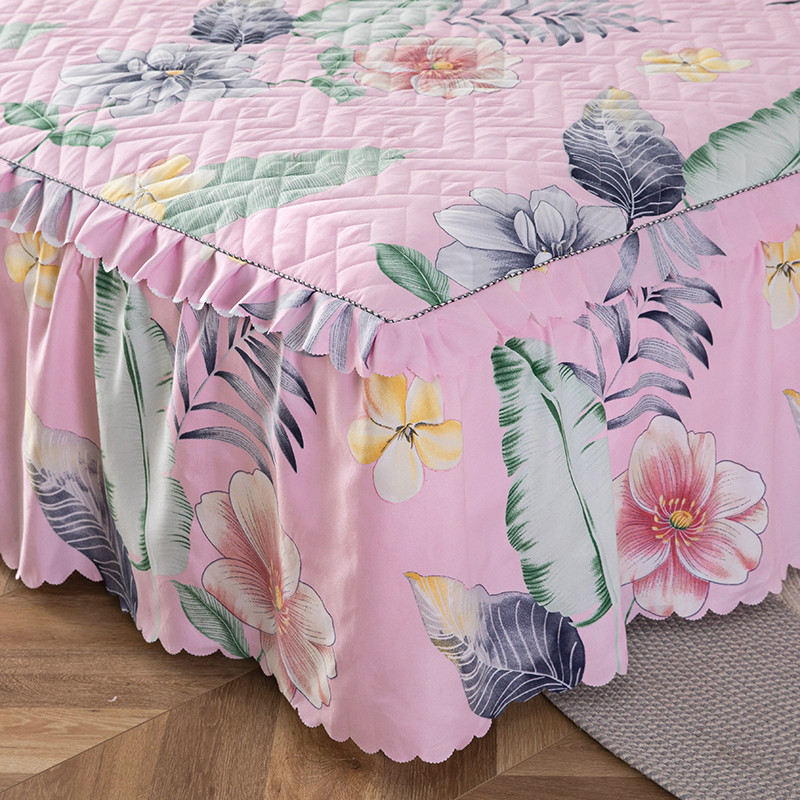 纽缦 2020新款加厚磨毛单件夹棉床裙 梦幻花田粉