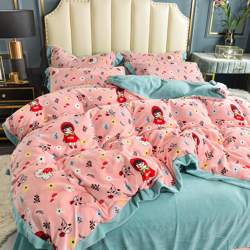 昊川2020新款冬季加厚轻奢工艺款牛奶绒四件套 小红帽
