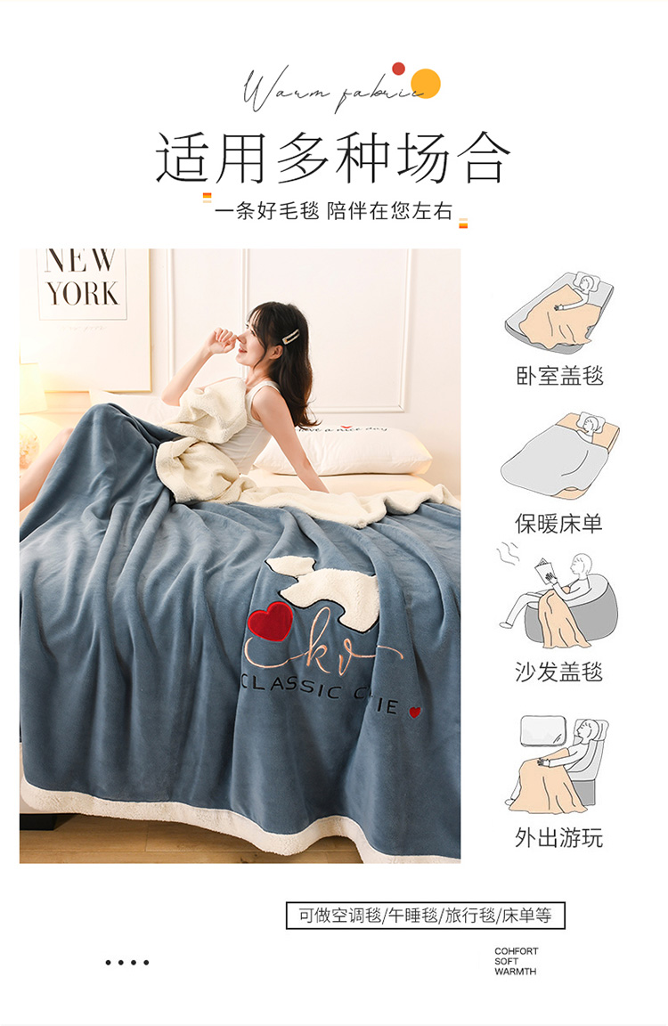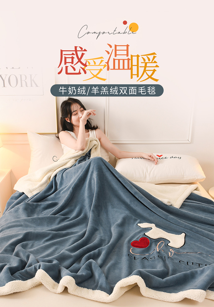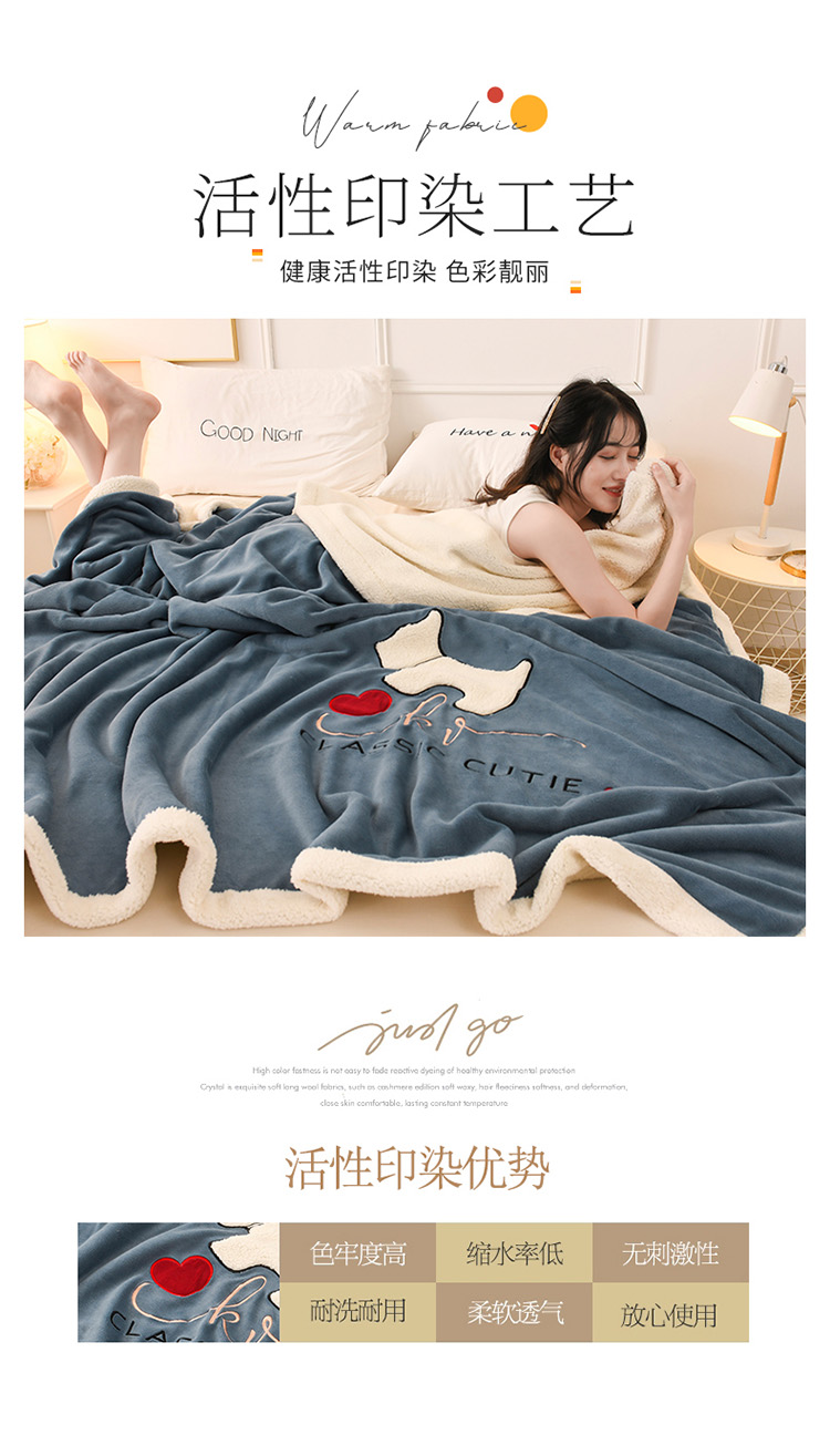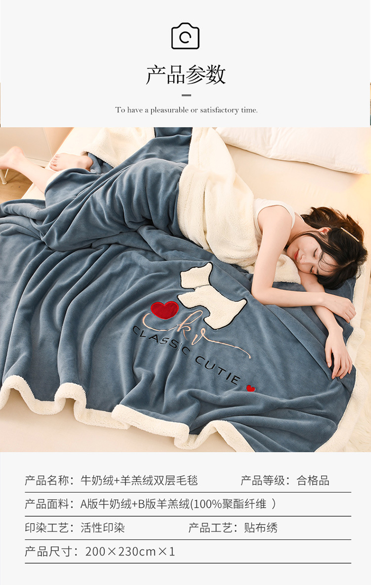 朗莎家纺 2020新款羊羔绒+牛奶绒毛毯 神奇狗-宾利蓝