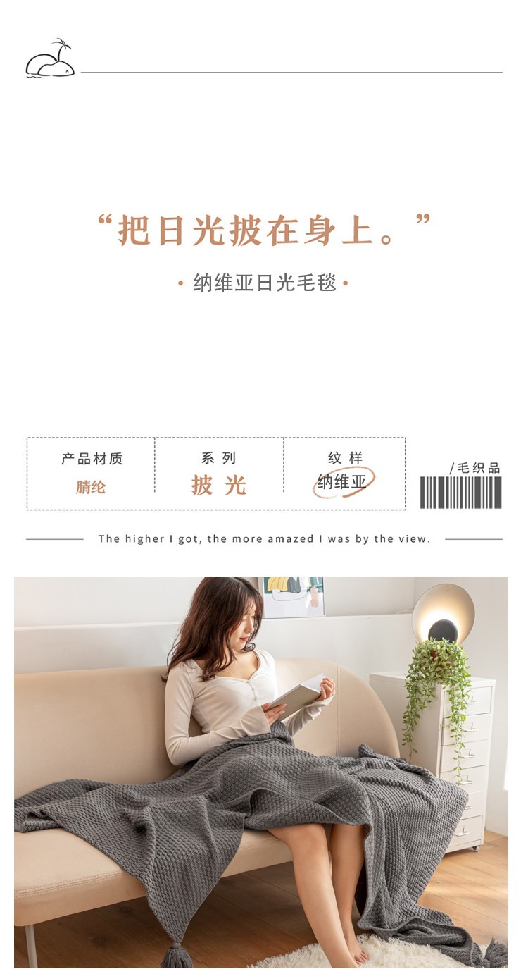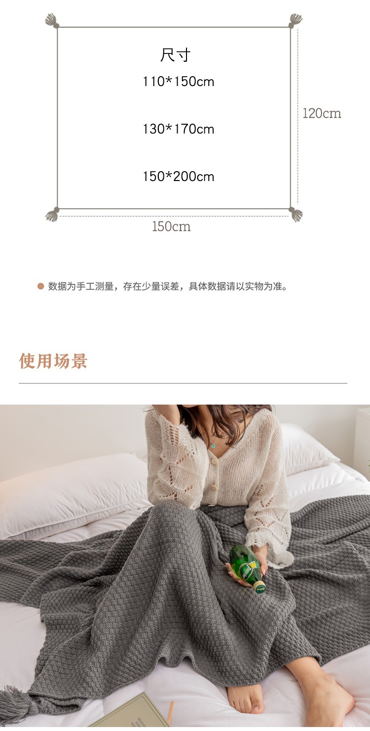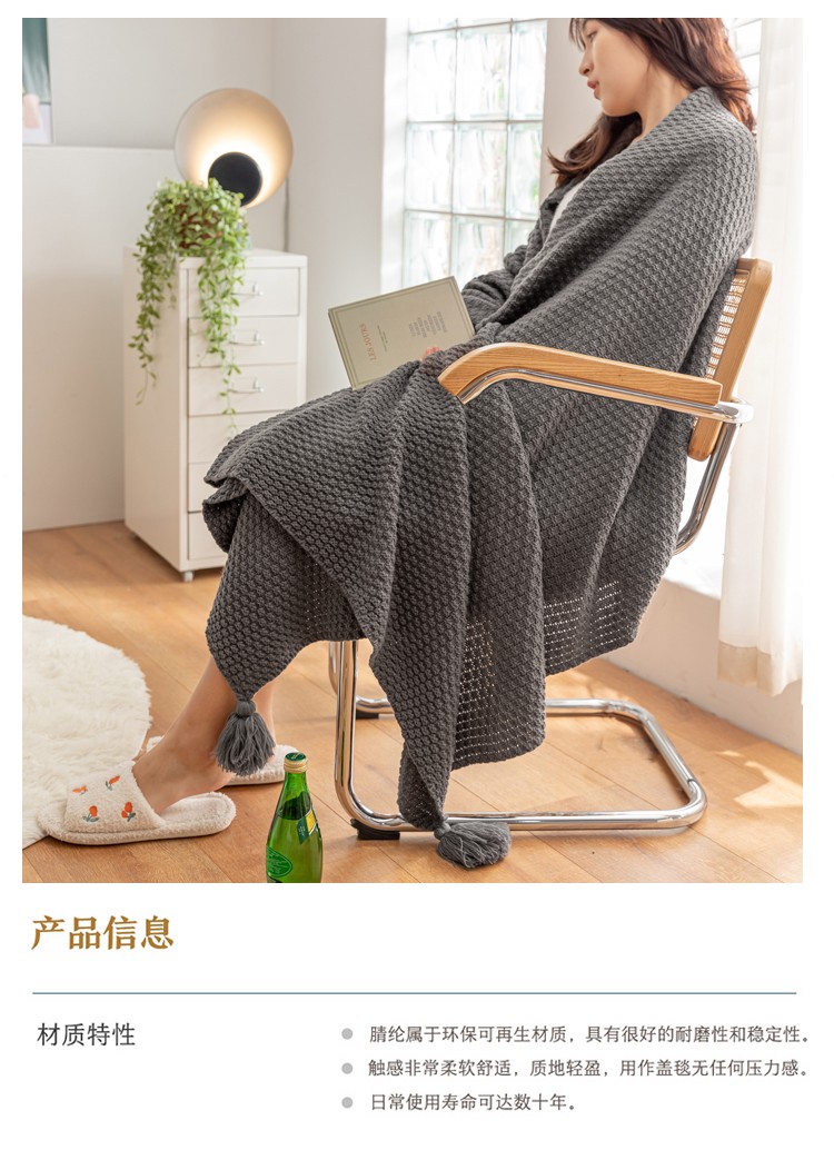 商品名称:北欧风披肩流苏针织毯沙发毯午睡盖毯空调被休闲毯小毛毯子 浅咖色
