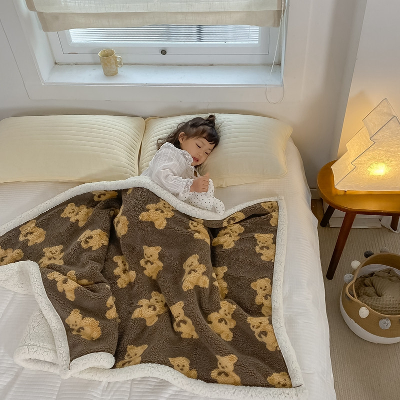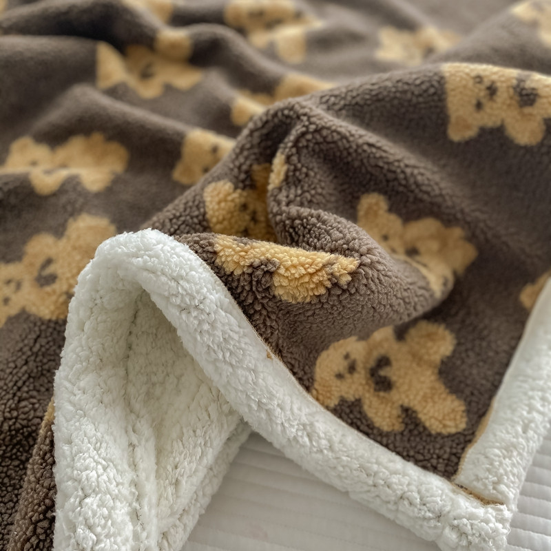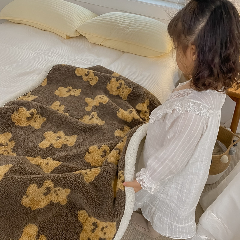 萝莉家纺 2021新款小熊双面羊羔绒暖肤毯 熊-咖色