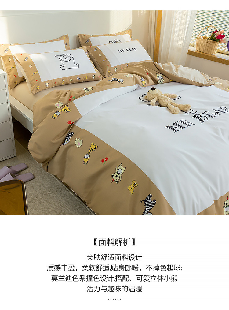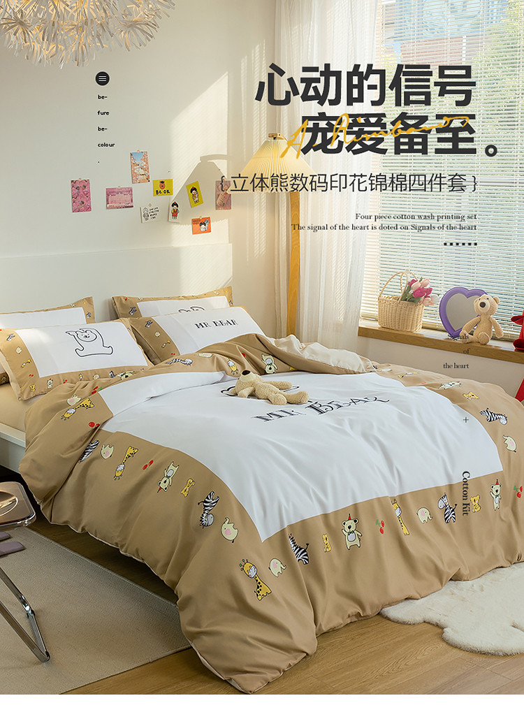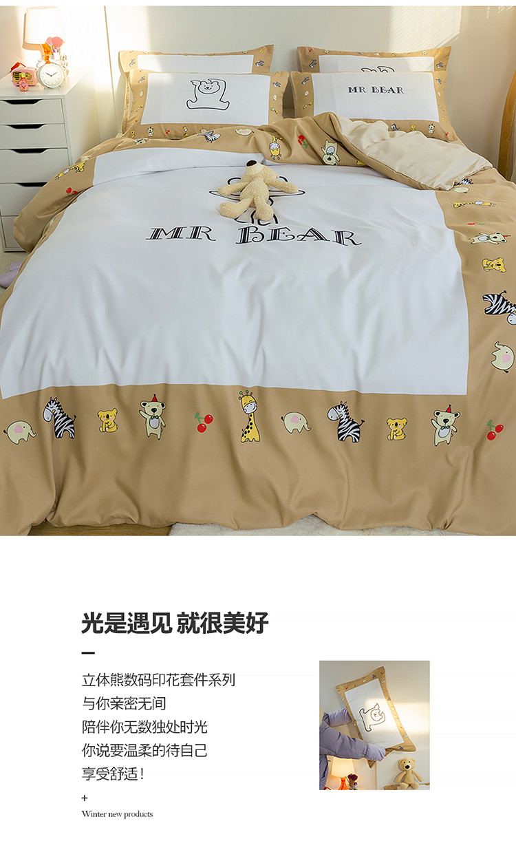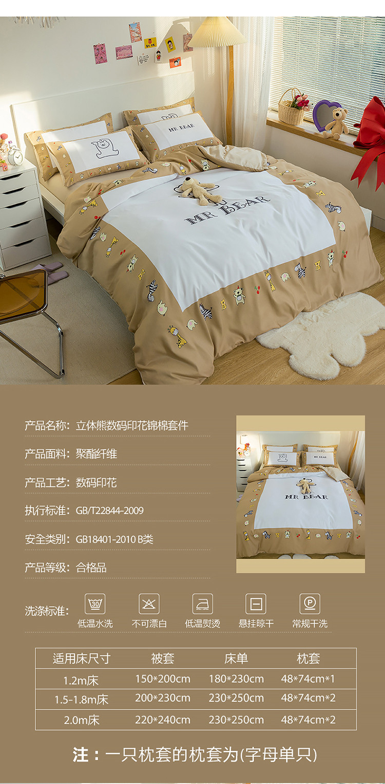 商品名称:花伞 2021新款卡通立体熊数码印花锦棉四件套 立体熊-卡其