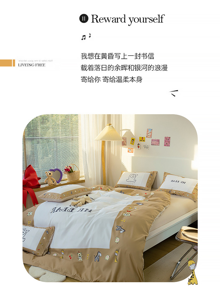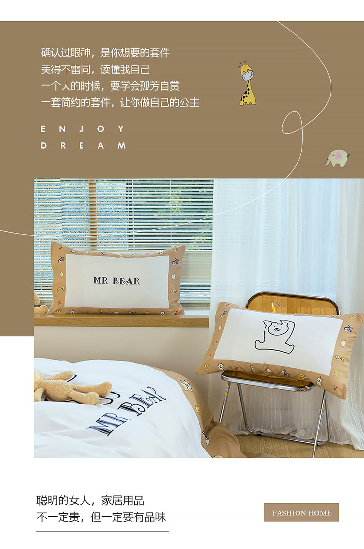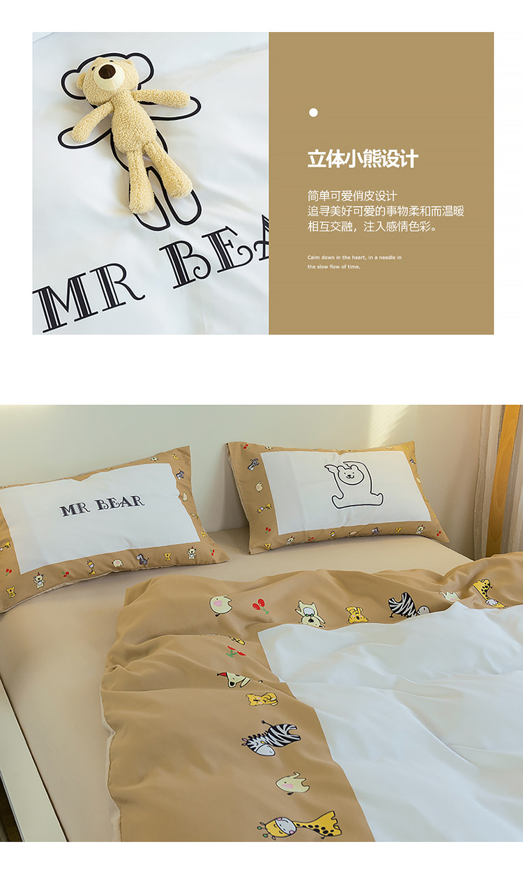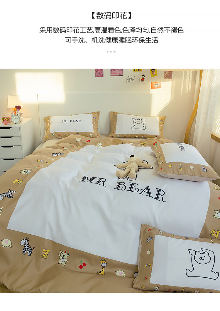 商品名称:花伞 2021新款卡通立体熊数码印花锦棉四件套 立体熊-卡其