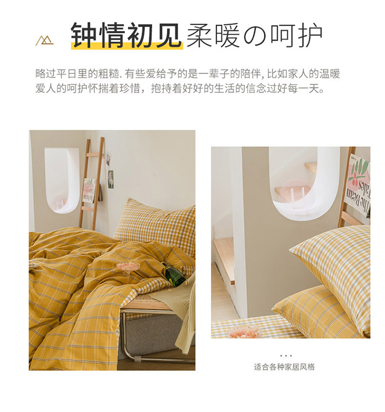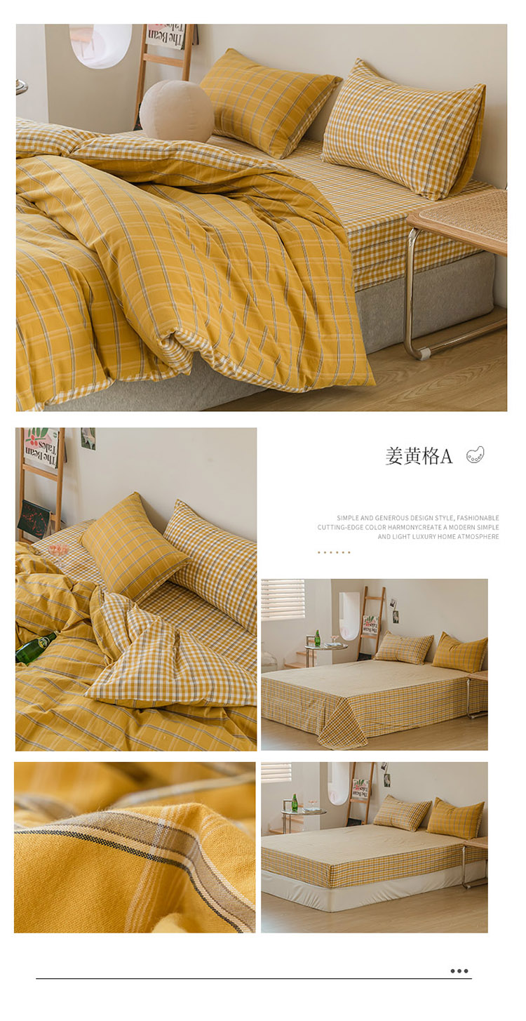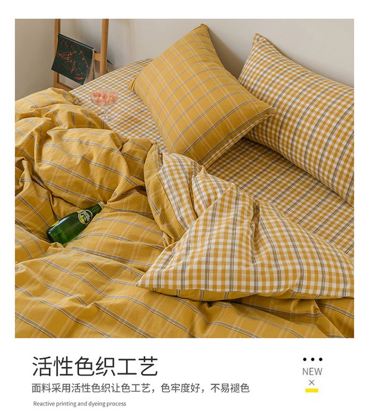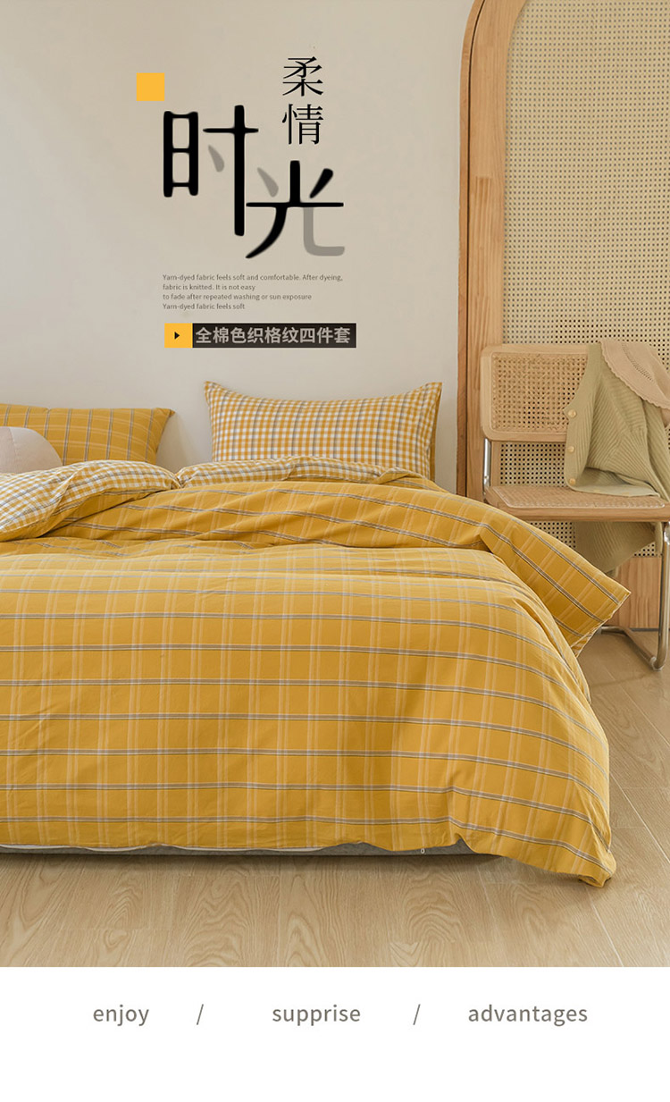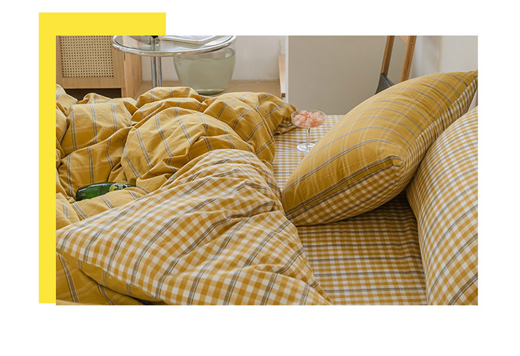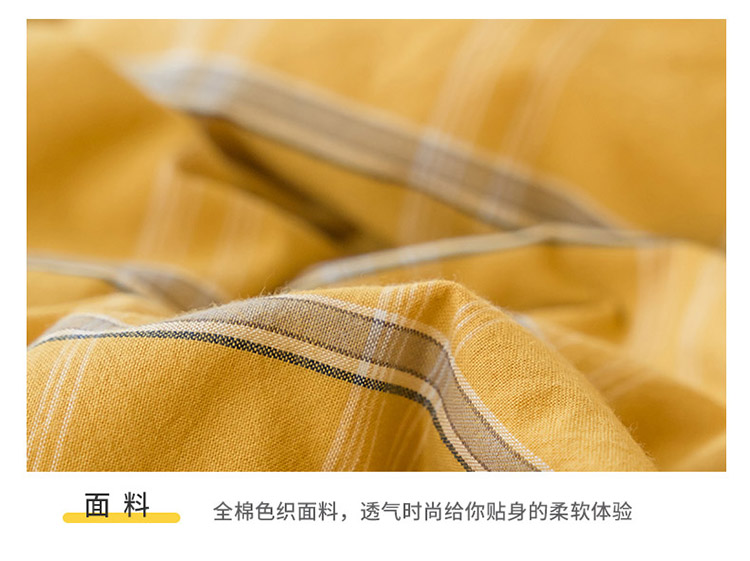 当前位置: 91家纺网 > 商品网购 > 床品套件 > 四件套 > 水洗棉四件套 > 柠萌家居 无印风格良品格子AB板色织水洗棉四件套 姜黄格A
