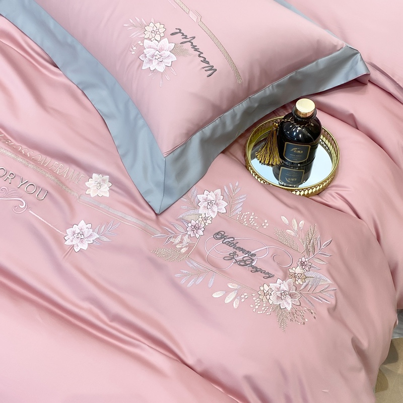 2021新款100支天丝棉刺绣四件套蓝调之夜 樱花粉