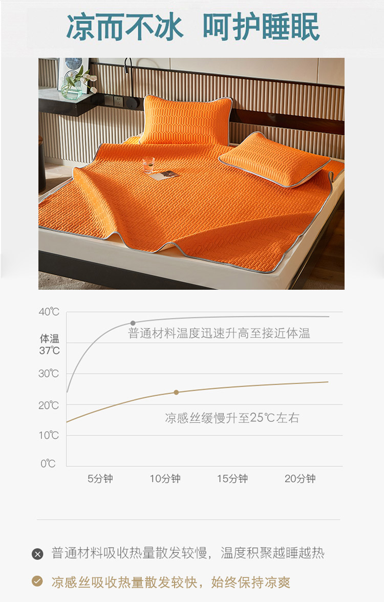 商品名称:凡客家居2021春夏凉感丝纯色乳胶凉席 哈伦(爱玛橙)