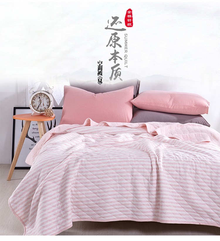 商品名称:琪琪阁 2022新款针织棉夏被宽条纹系列 浅粉条纹