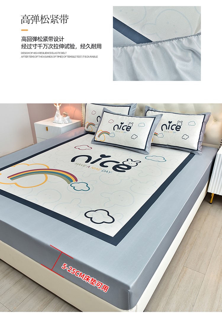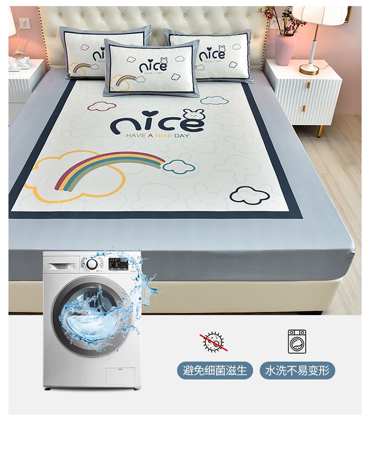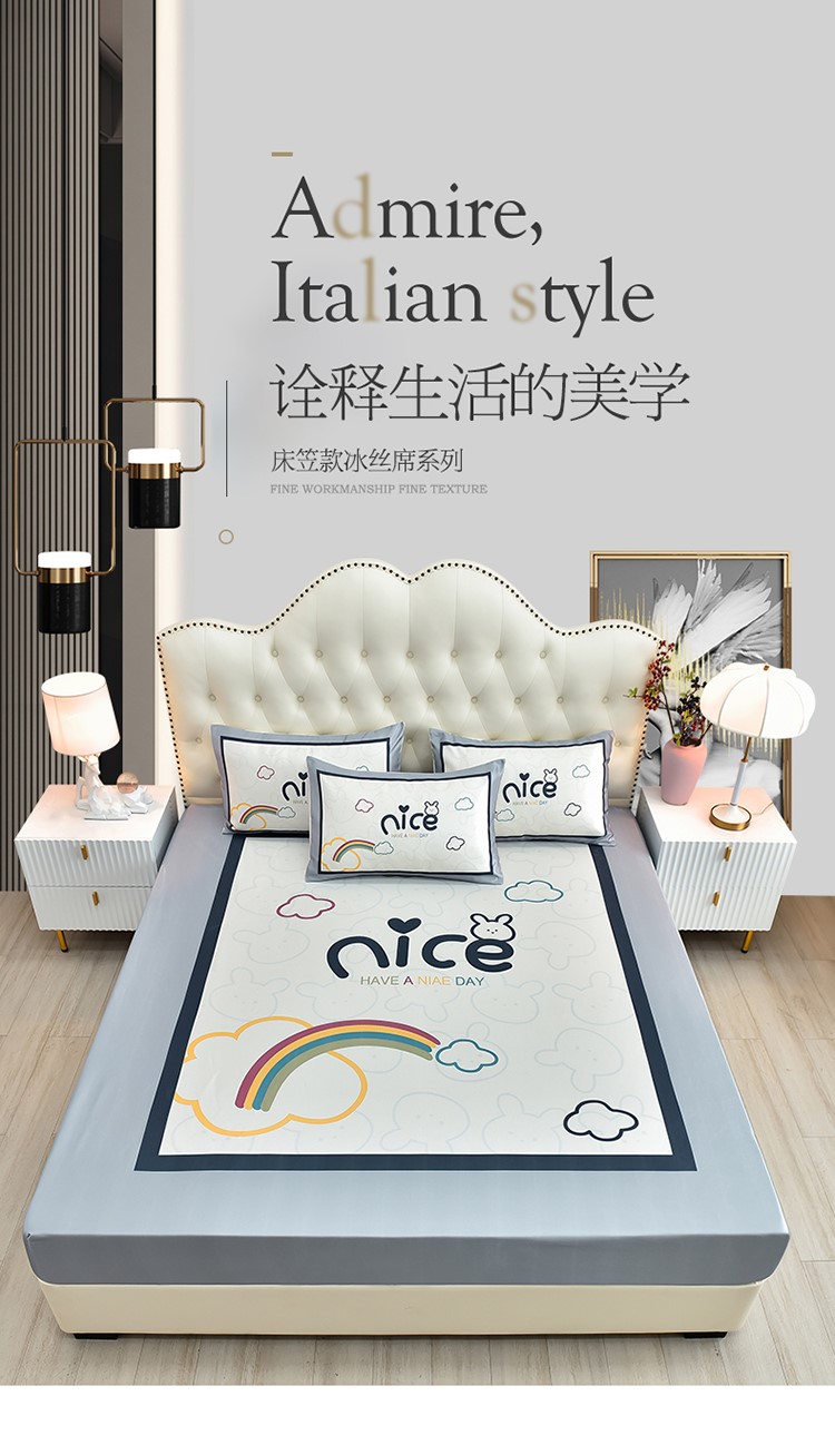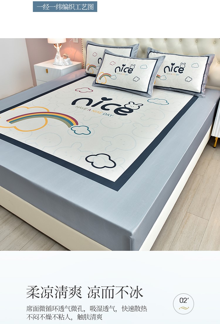 商品名称:同田 2023新款大版冰丝床笠凉席三件套空调软席 好心情