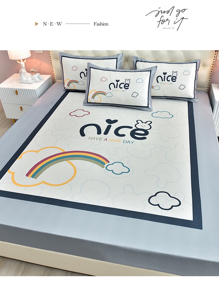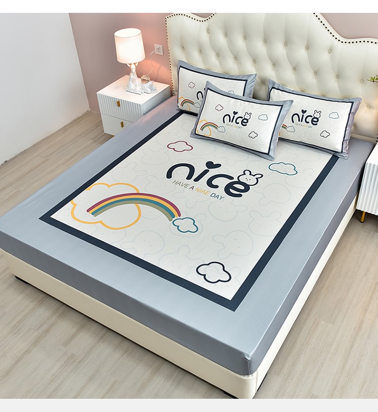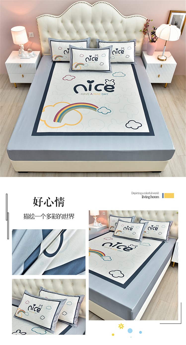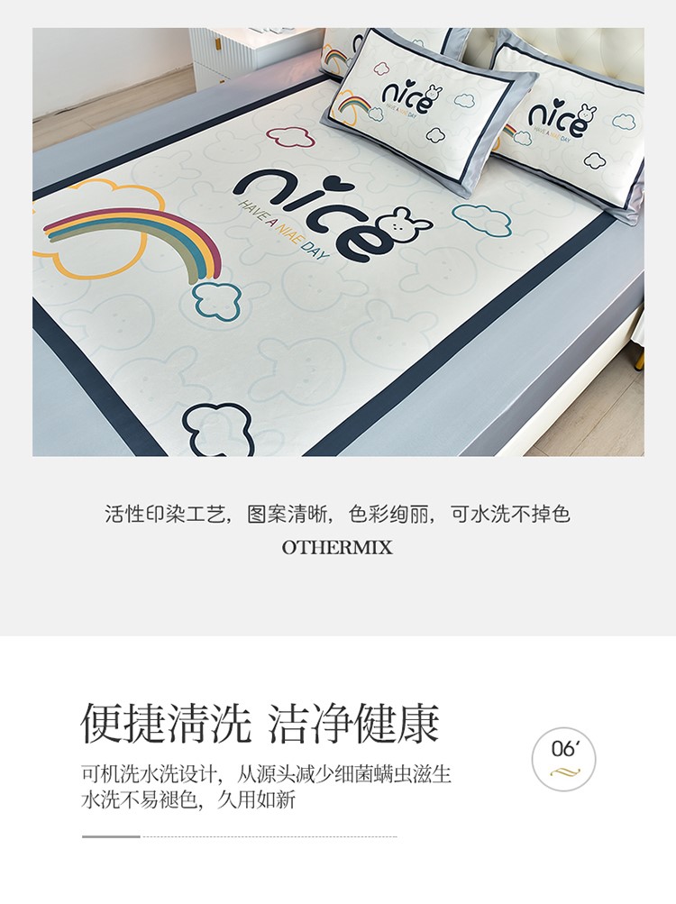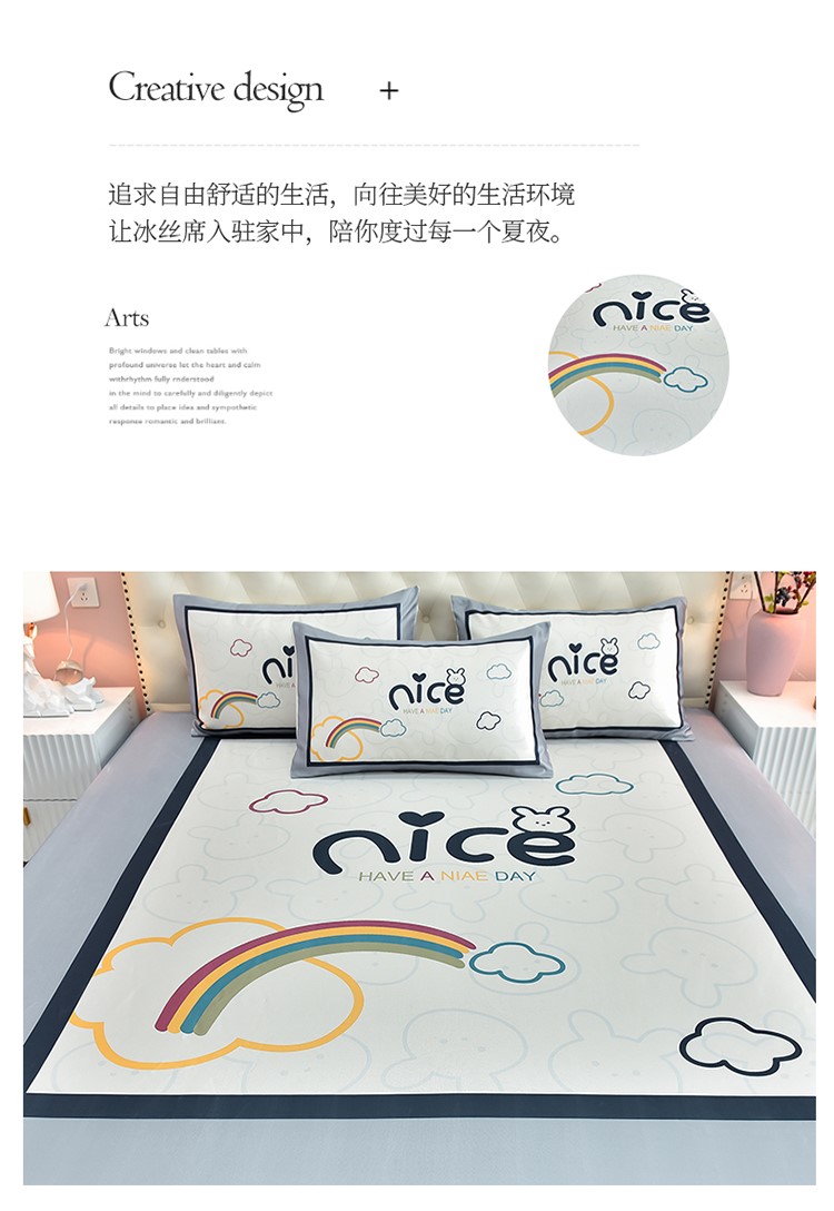 商品名称:同田 2023新款大版冰丝床笠凉席三件套空调软席 好心情