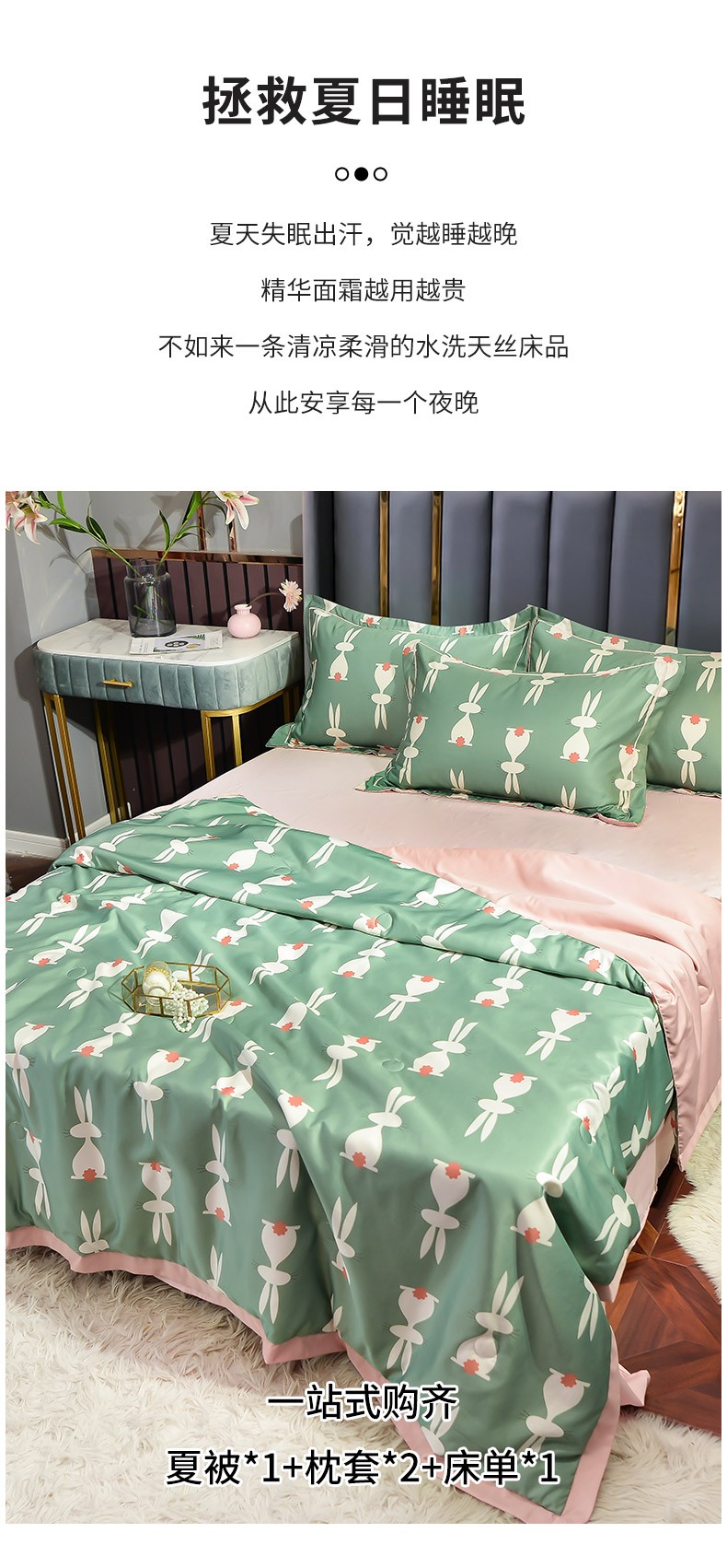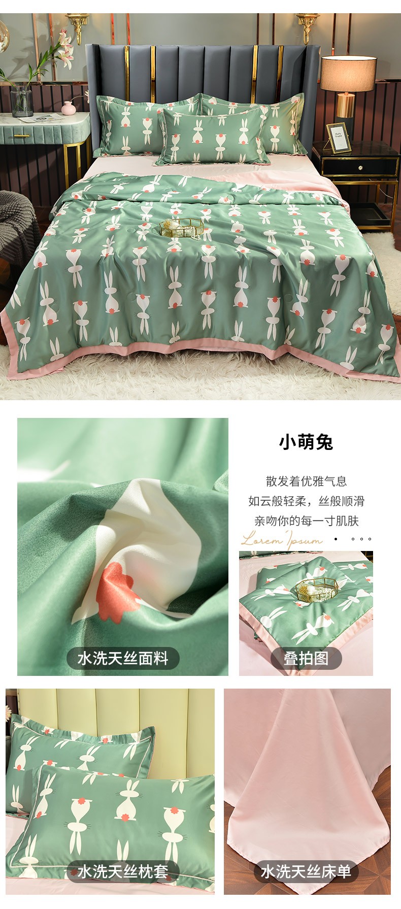 梦柏2021新款水洗天丝夏被 夏凉被 小萌兔