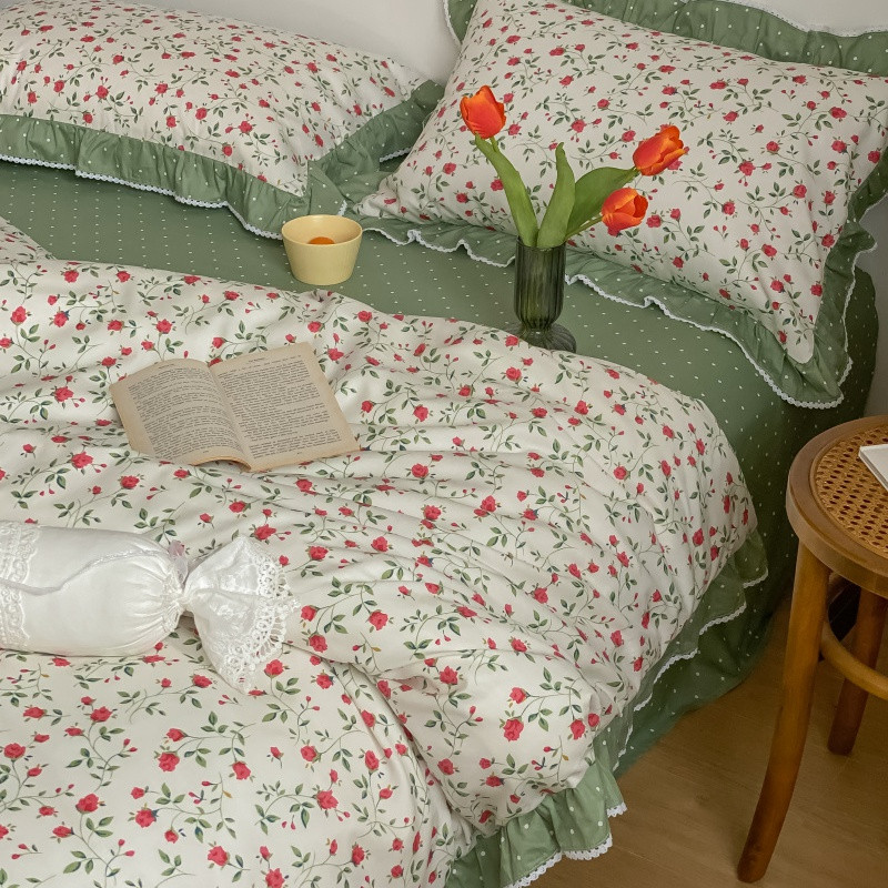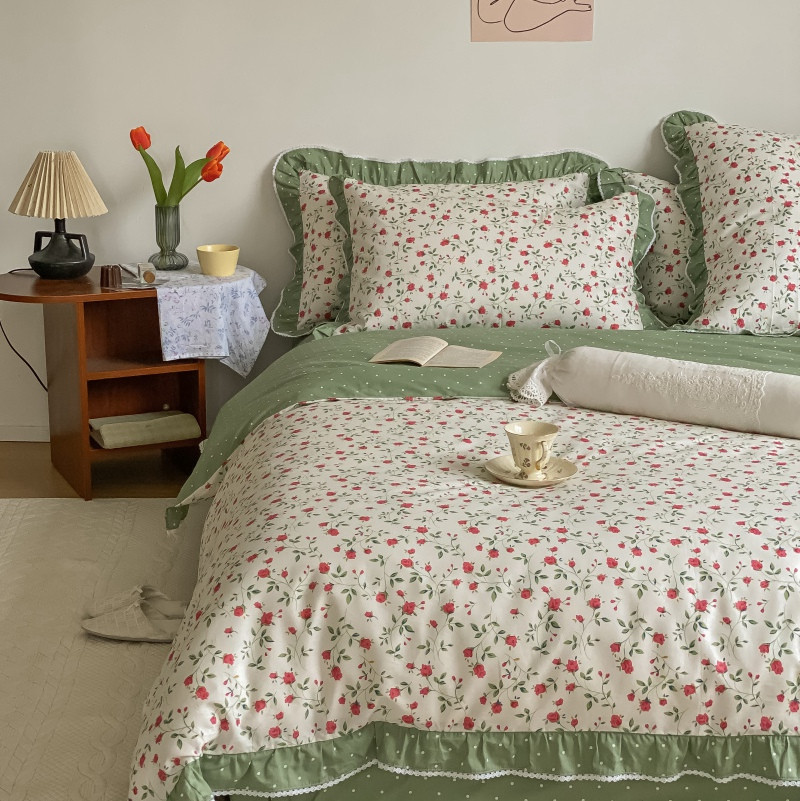 棉生活 2022新款韩系花边碎花四件套 法尔曼