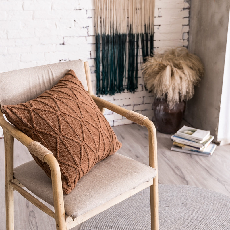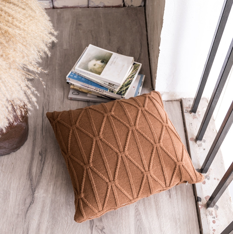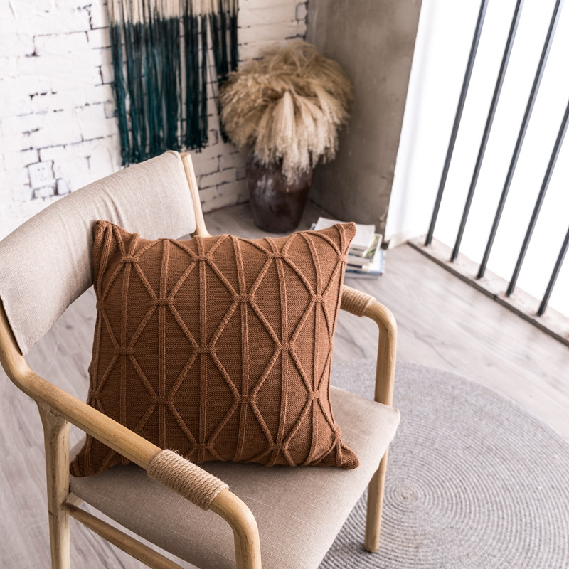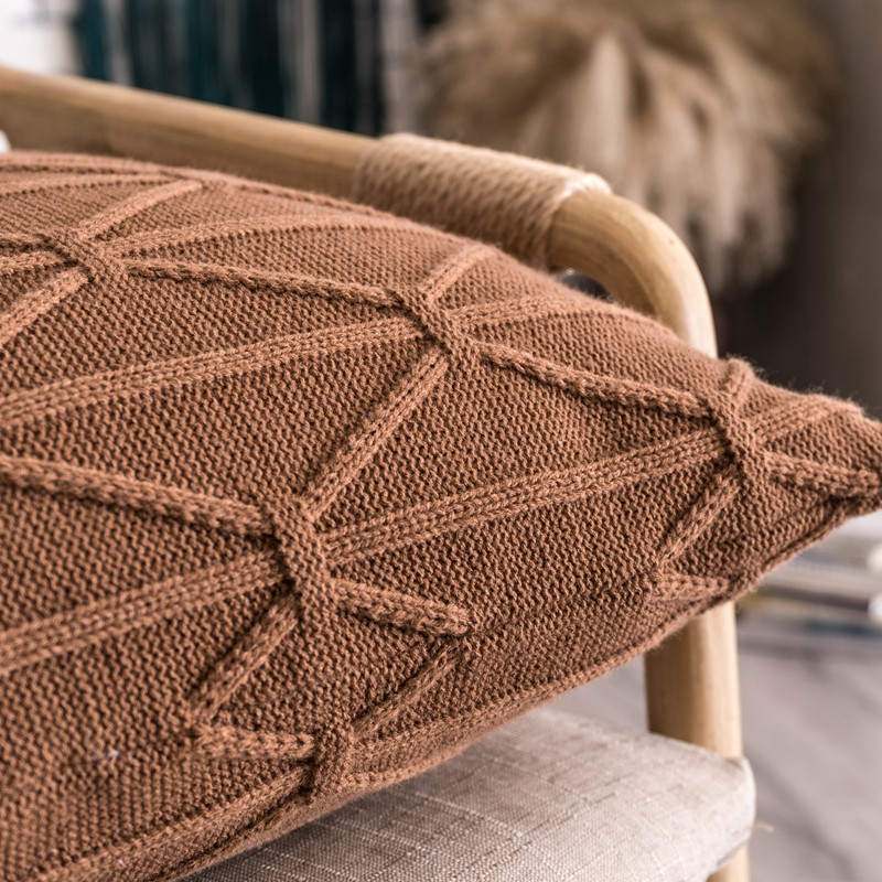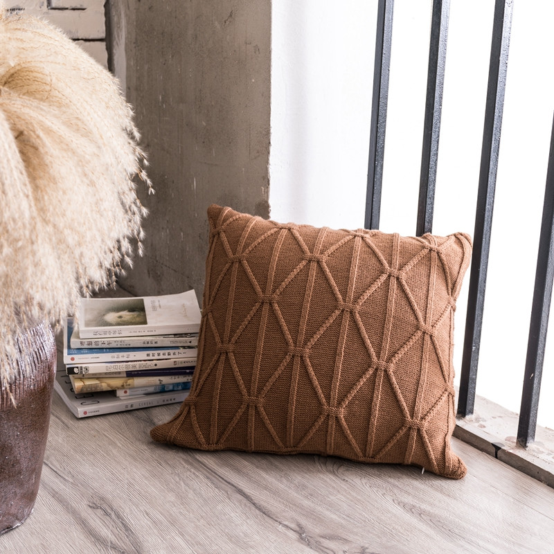 918拾朵家居 2021新款米字结抱枕 浅咖