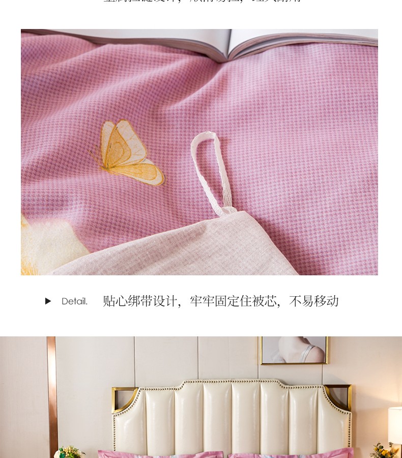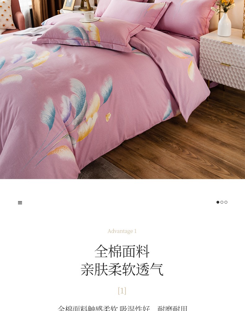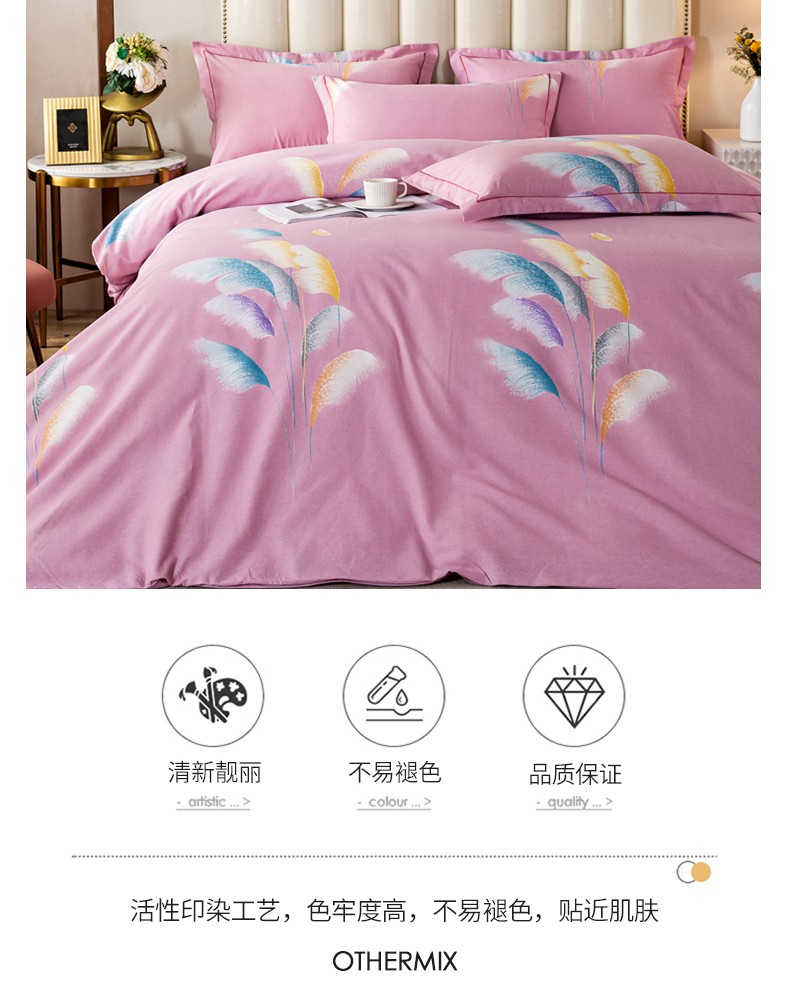 商品名称:金纱玉纺 2022新款全棉磨毛四件套 莱茵河畔-粉