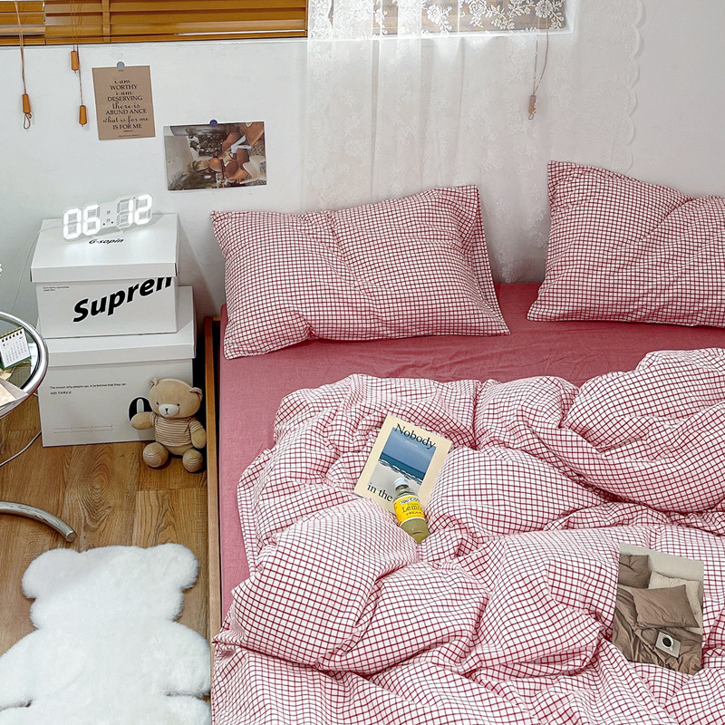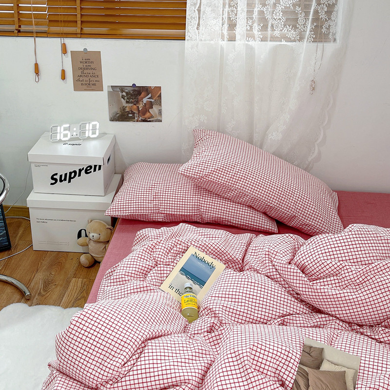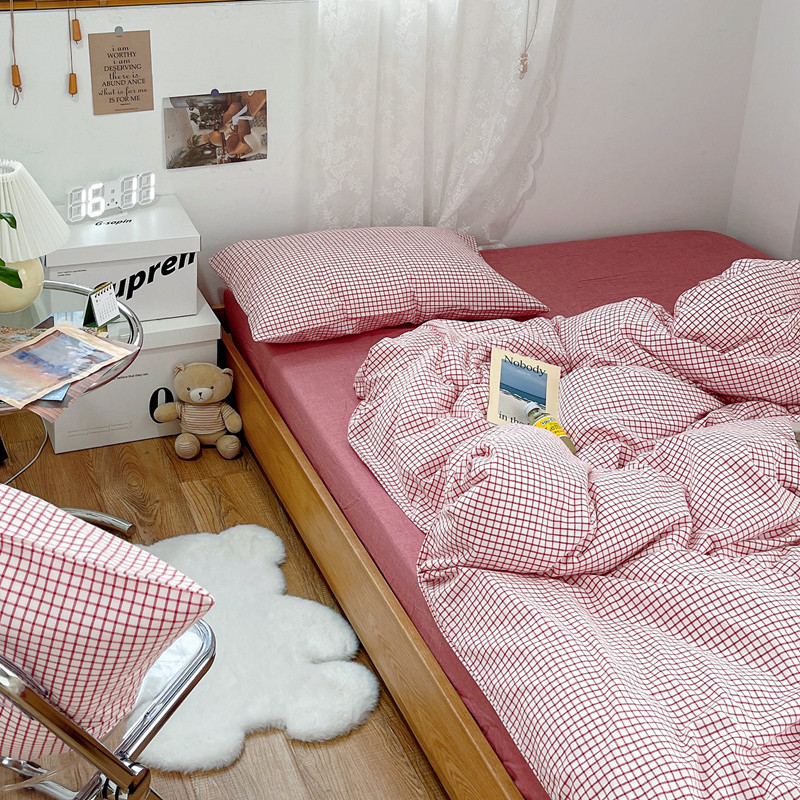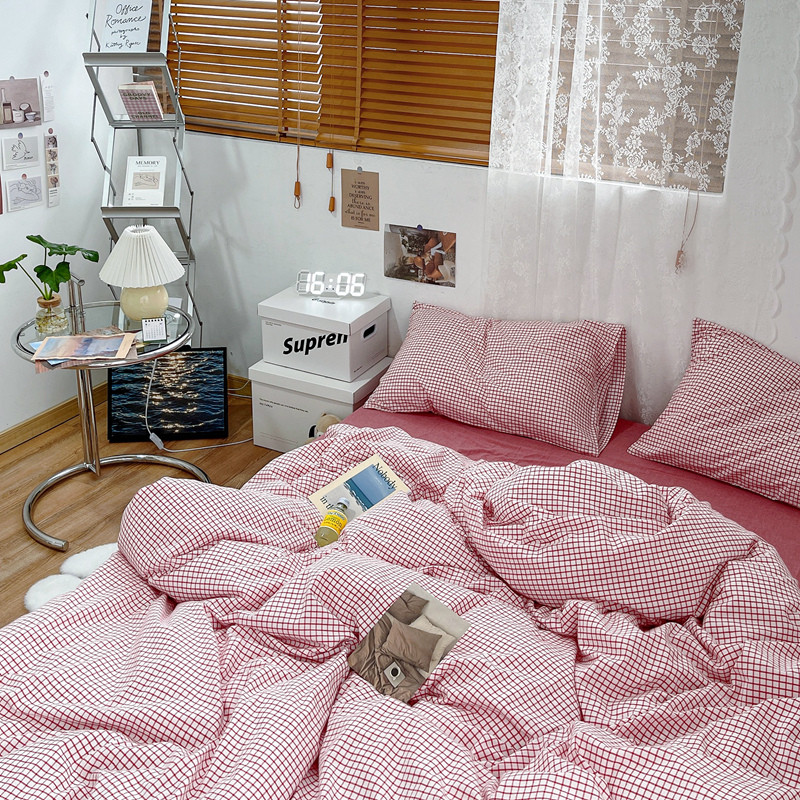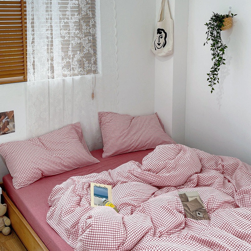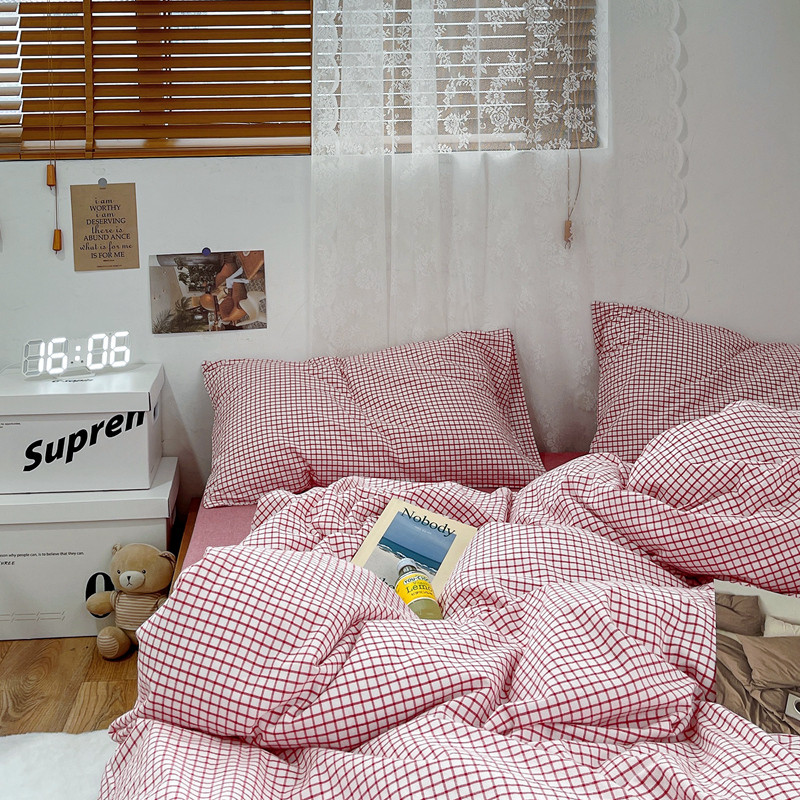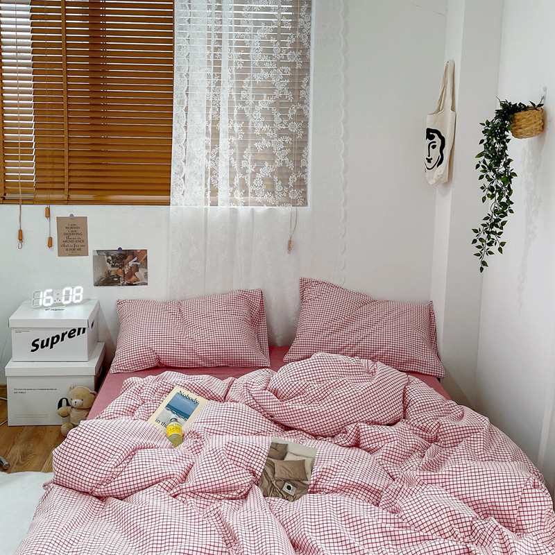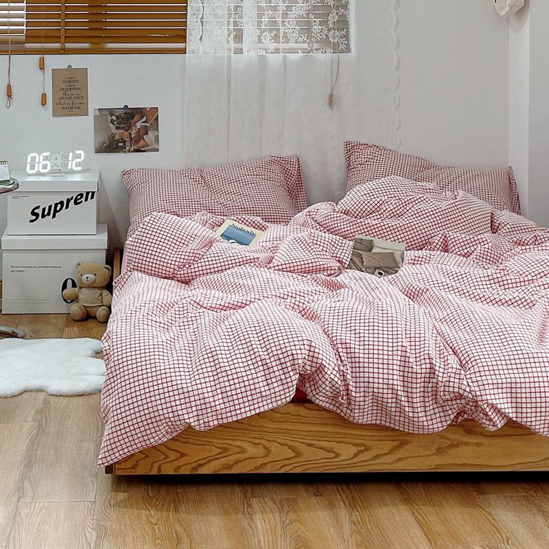 当前位置: 91家纺网 > 商品网购 > 床品套件 > 四件套 > 水洗棉四件套 > 安莱生活 2021新款水洗棉全棉四件套 清新酱红格