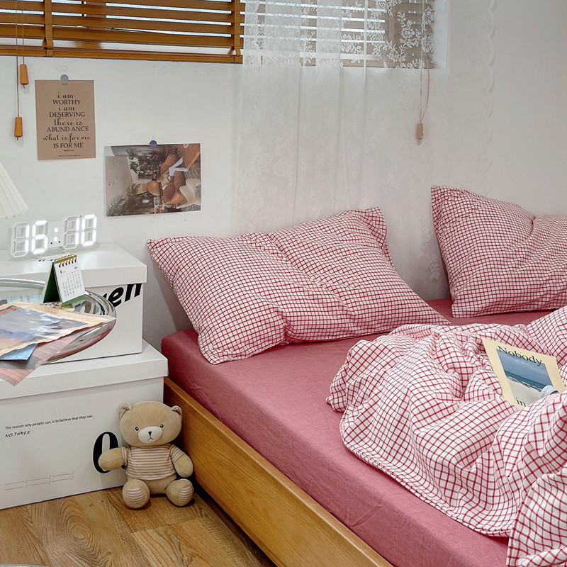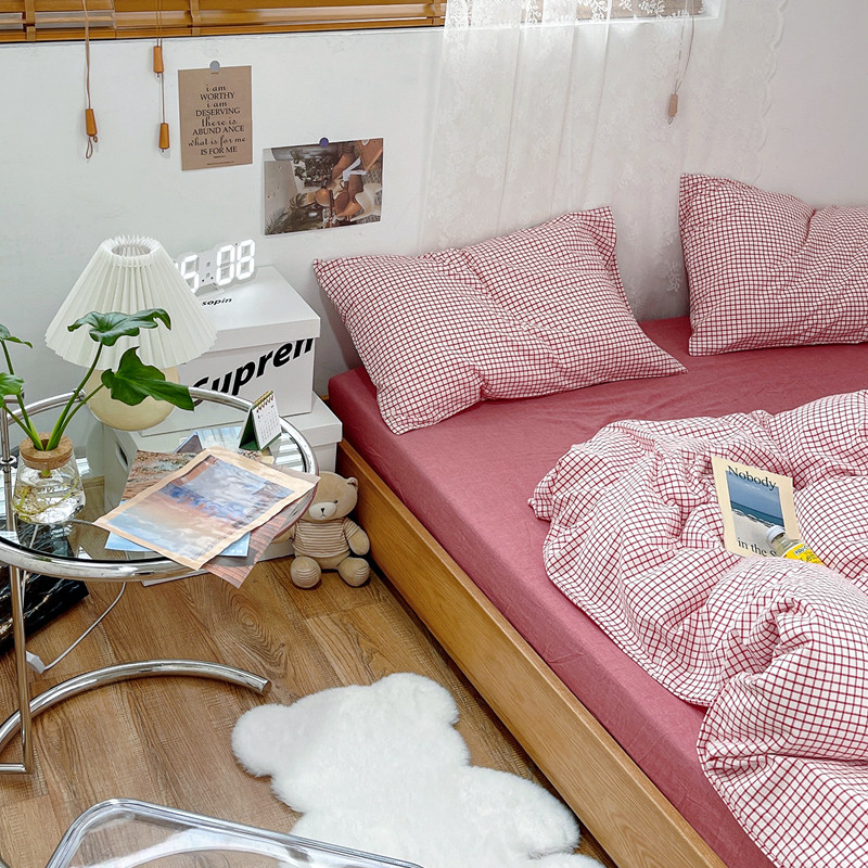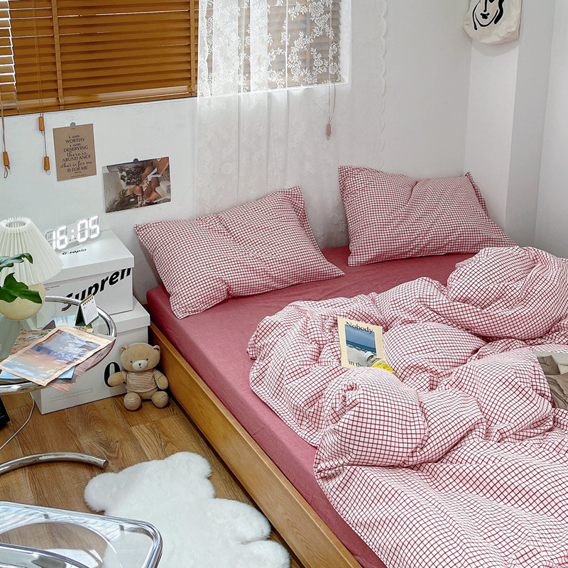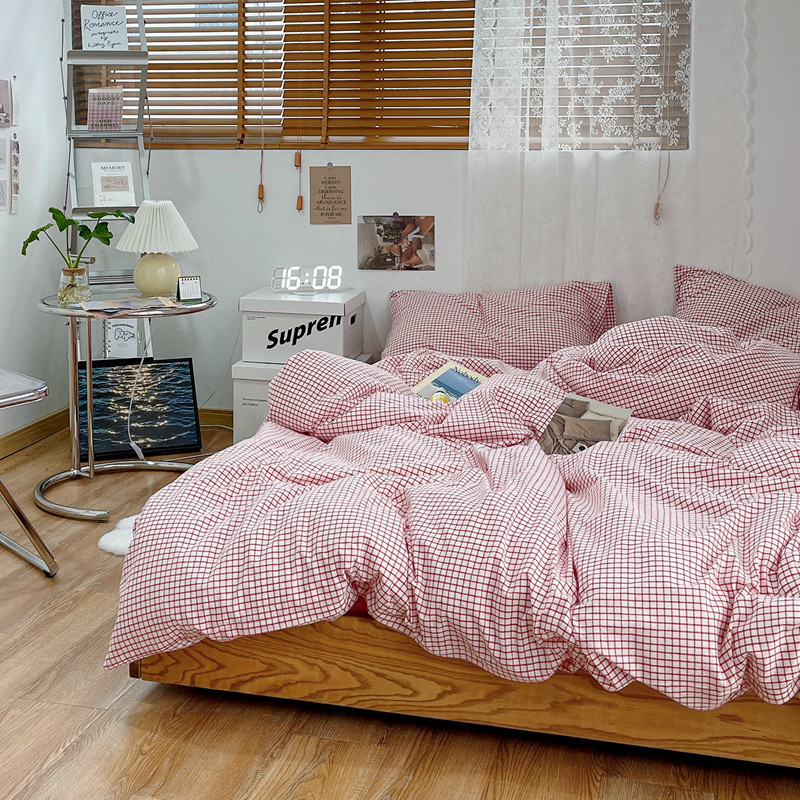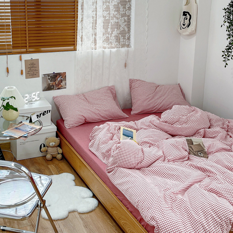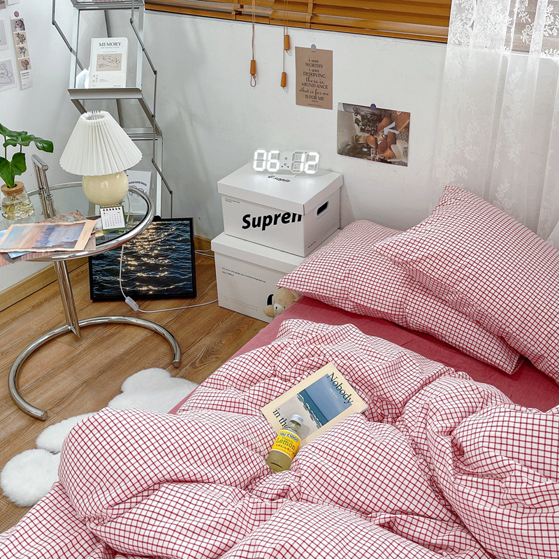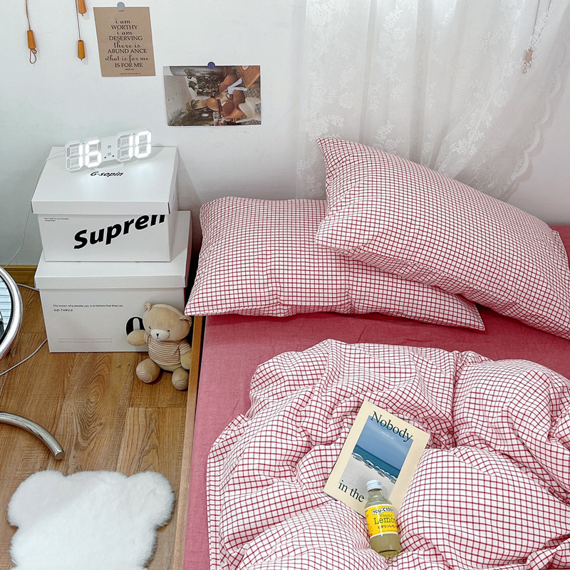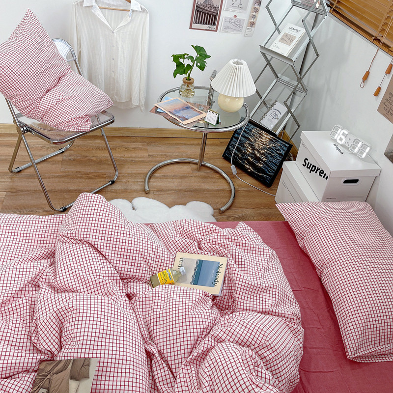 当前位置: 91家纺网 > 商品网购 > 床品套件 > 四件套 > 水洗棉四件套 > 安莱生活 2021新款水洗棉全棉四件套 清新酱红格