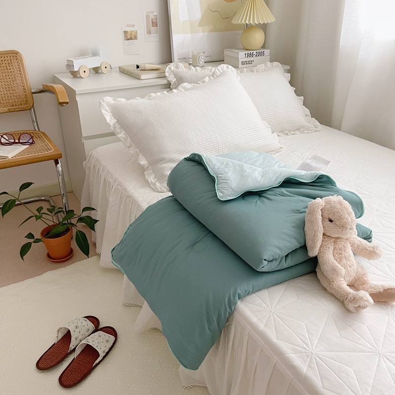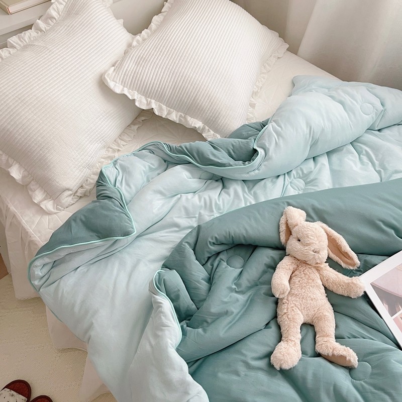 星期八 2021新款马卡龙大豆针织春秋被冬被 深豆绿浅豆绿