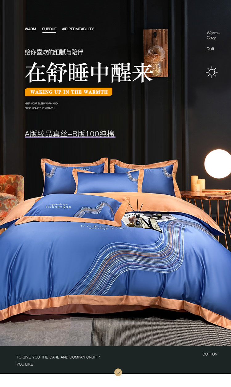 商品名称:宅家居 2024新款臻品真丝B版纯棉米莱四件套 米莱-宝石蓝
