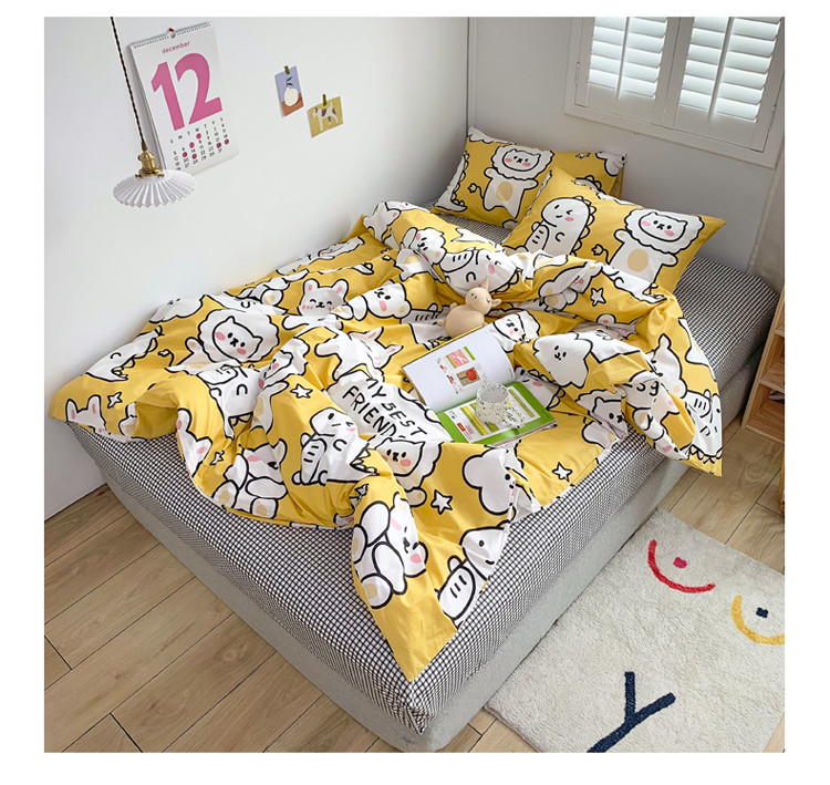 (总)怡家居 2025新款全棉纯棉磨毛绣花四件套-普通款,布丁狗,彩虹狗狗,魔法喵,七彩小熊,条纹小兔