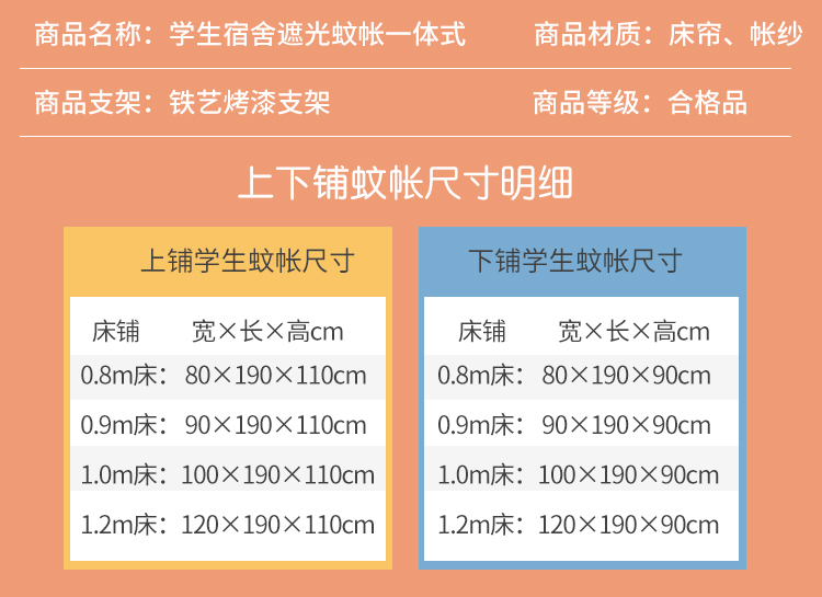 90cm上铺(不带靠墙帘) | ¥110.00 |