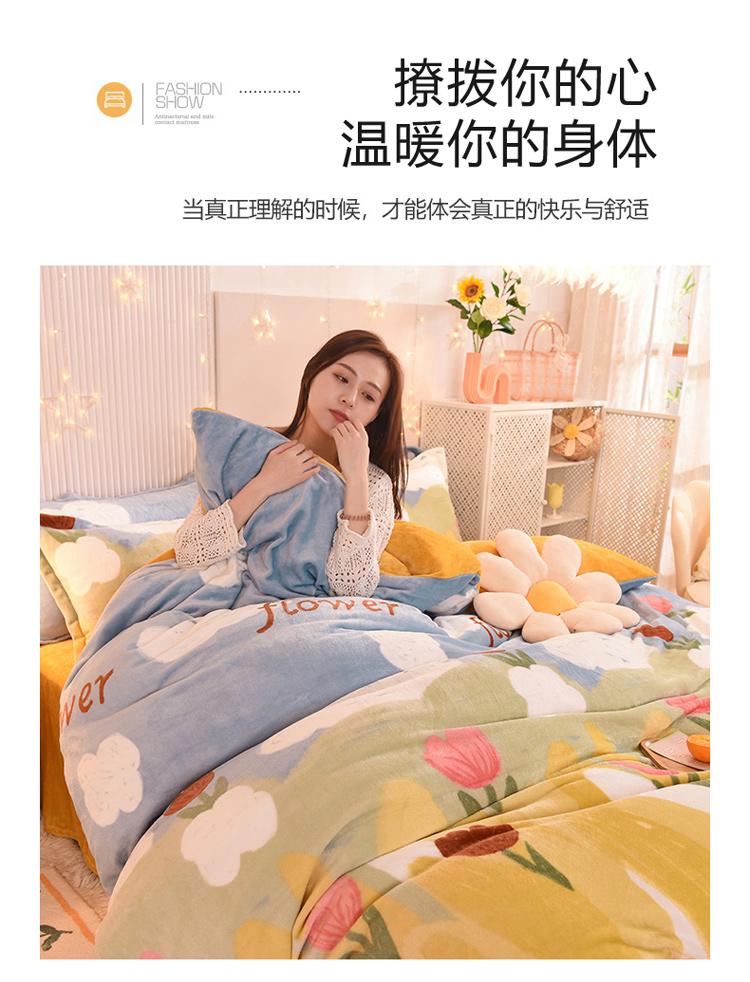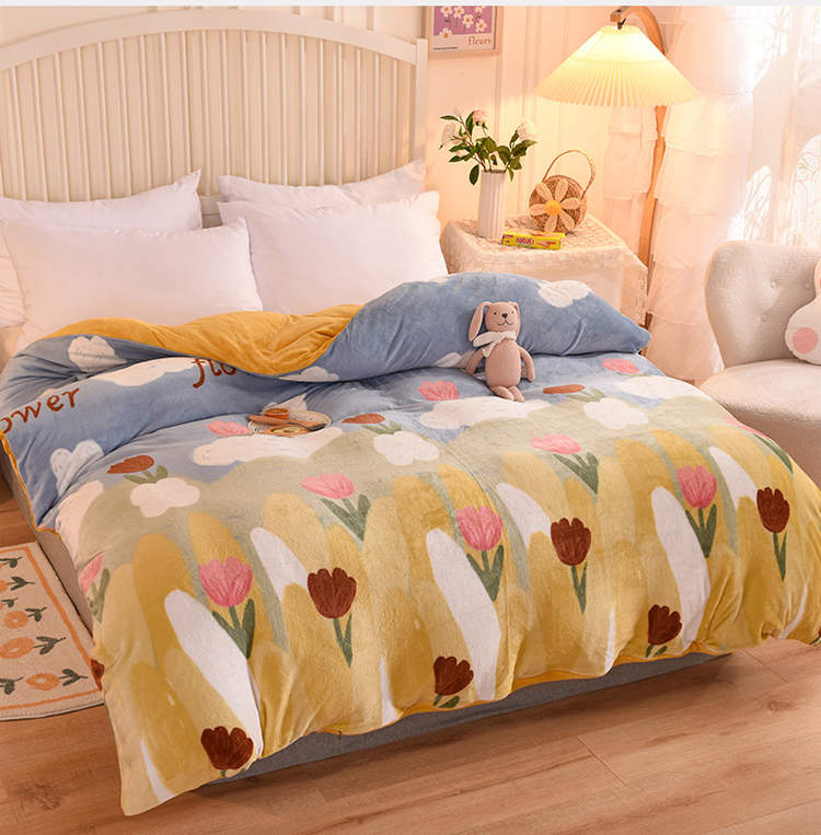 商品名称:眠博士 2021新款印花款多功能毛毯单被套鲜花小镇