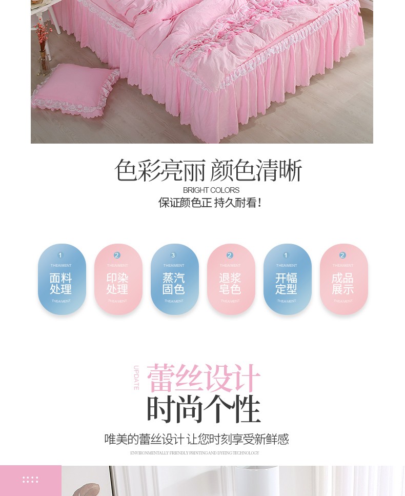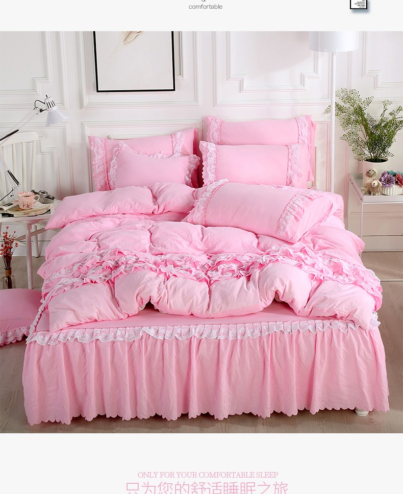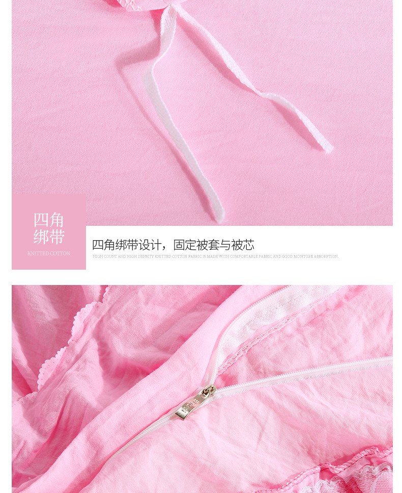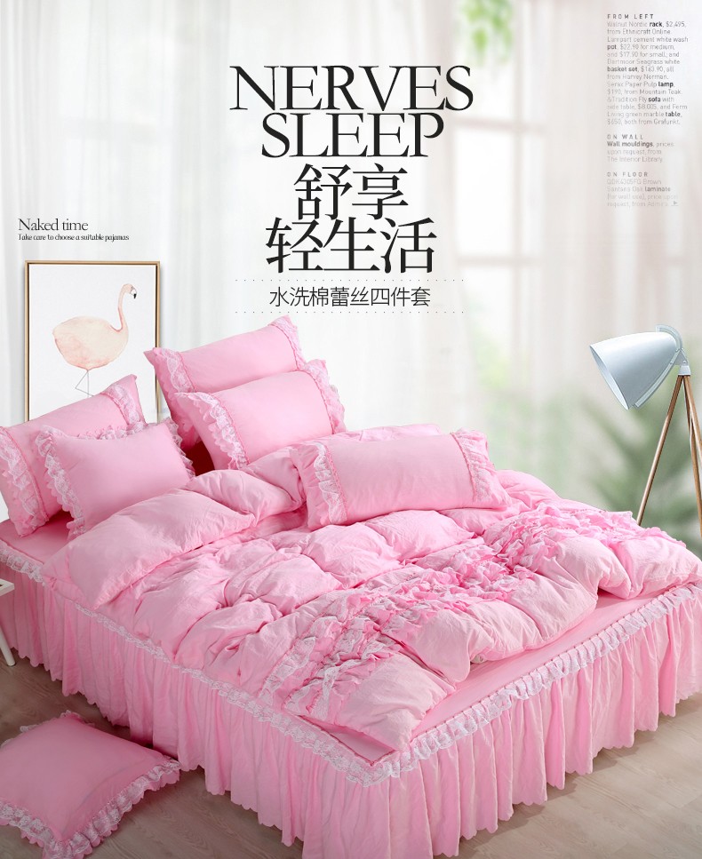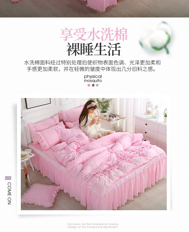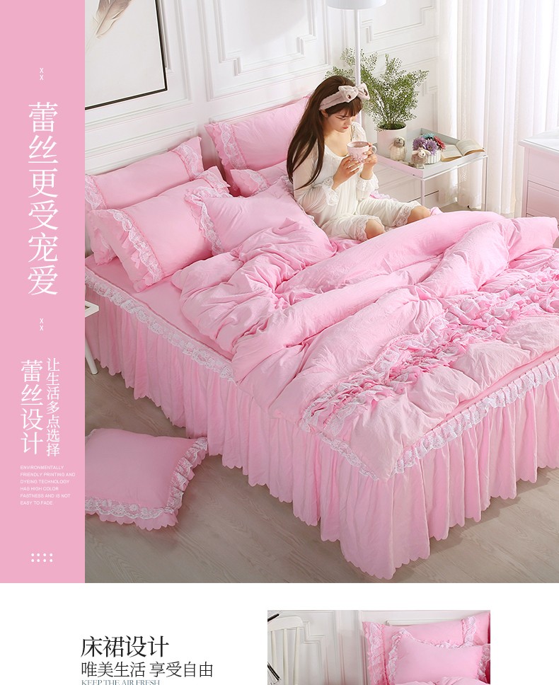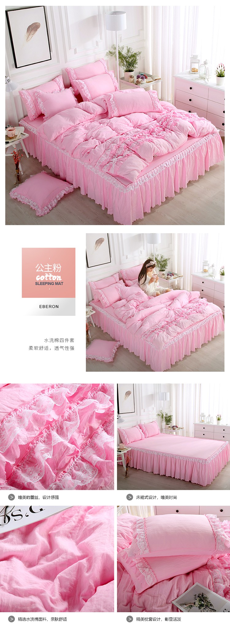 梦柏家纺 2021新款水洗棉蕾丝四件套 公主粉