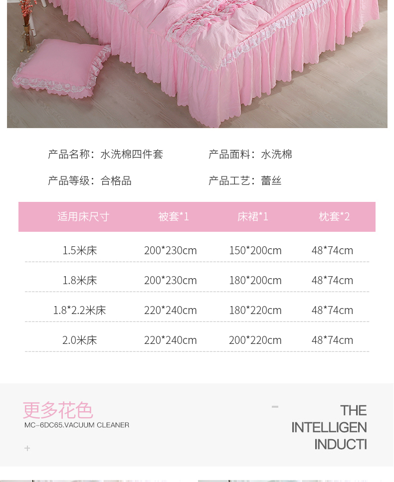 商品名称:梦柏家纺 2021新款水洗棉蕾丝四件套 公主粉