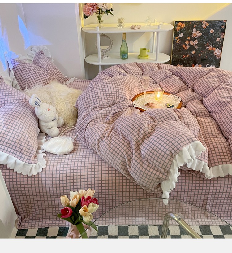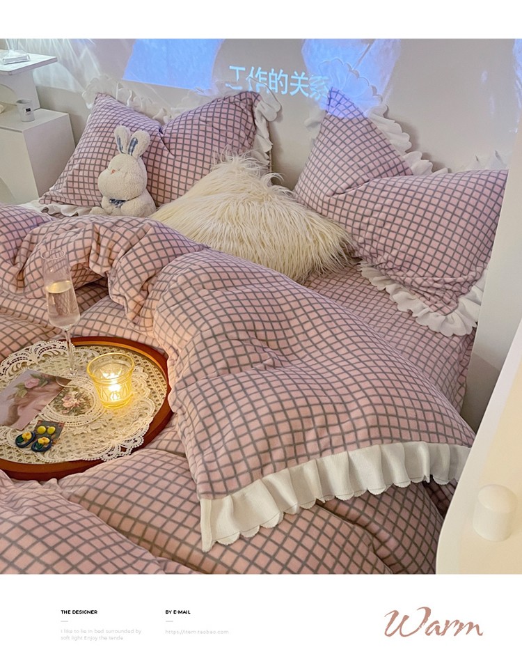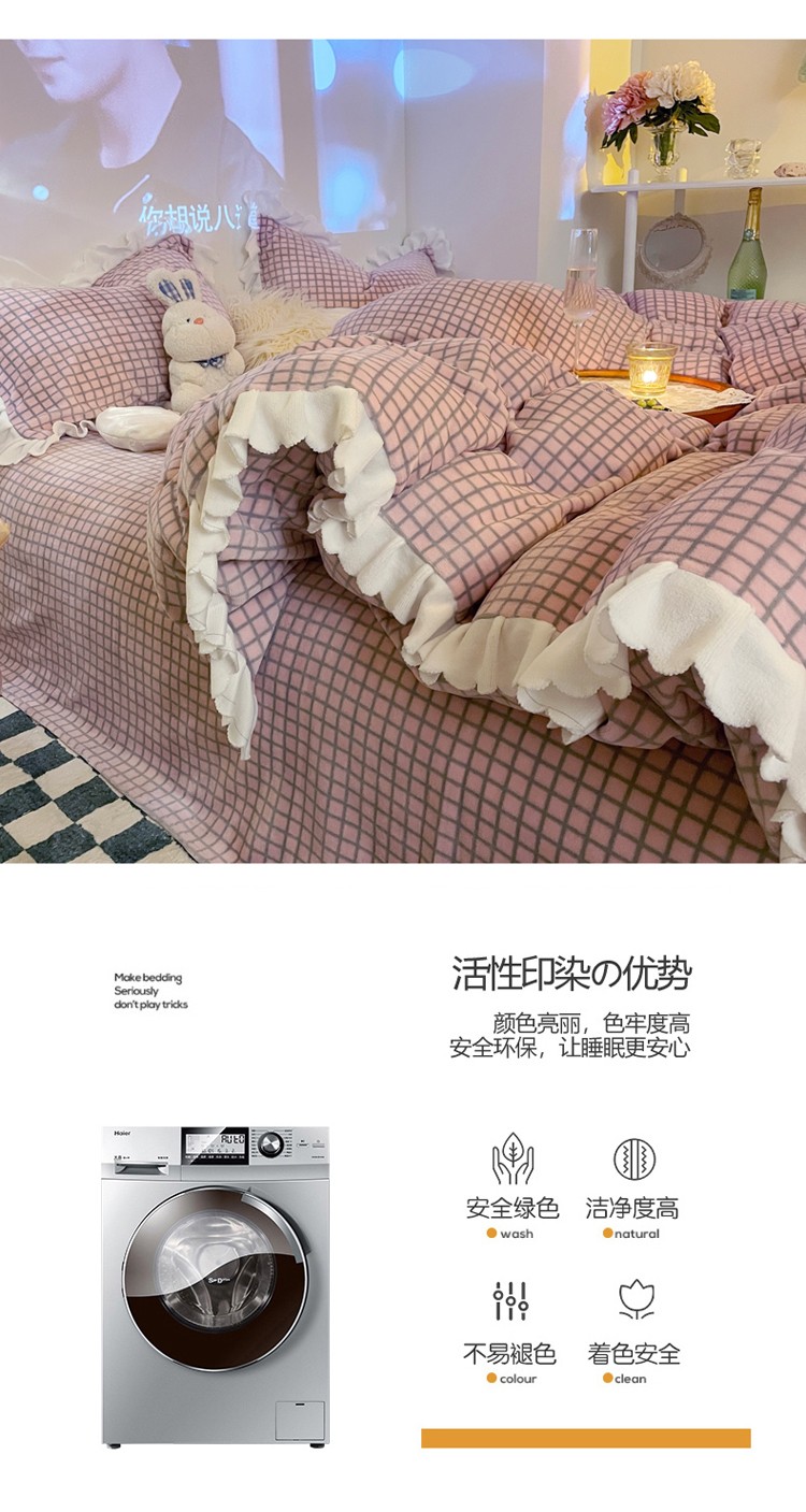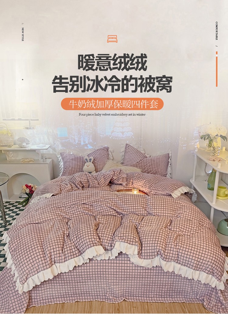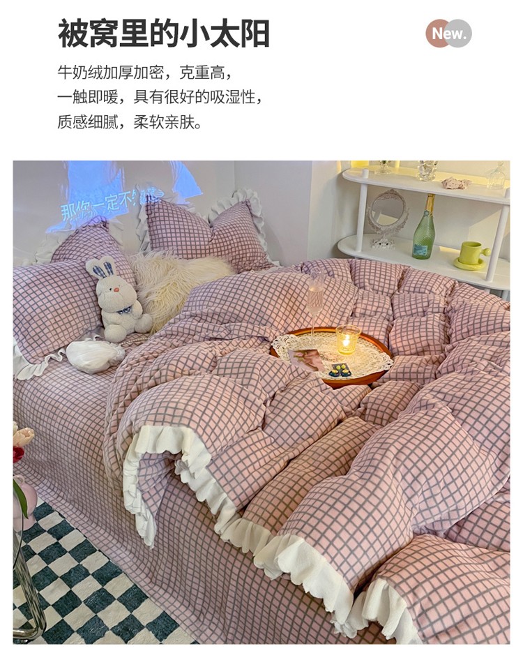 (总)千朵 2021新款韩版牛奶绒保暖四件套