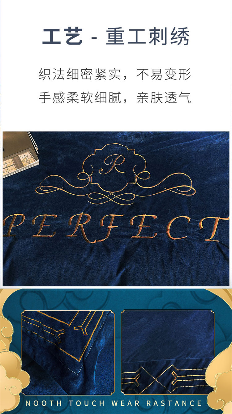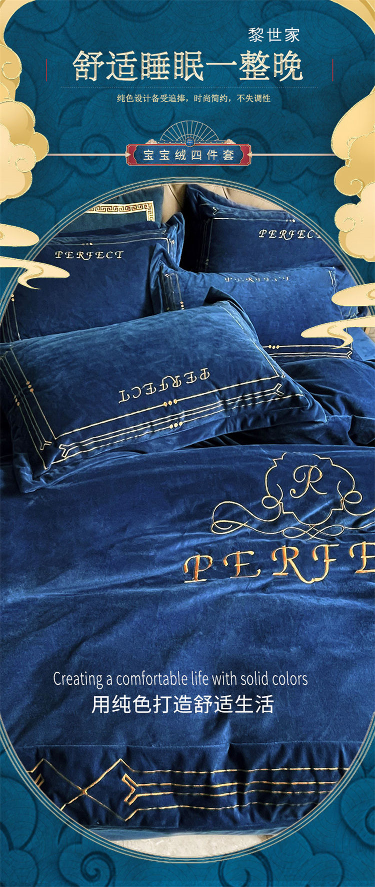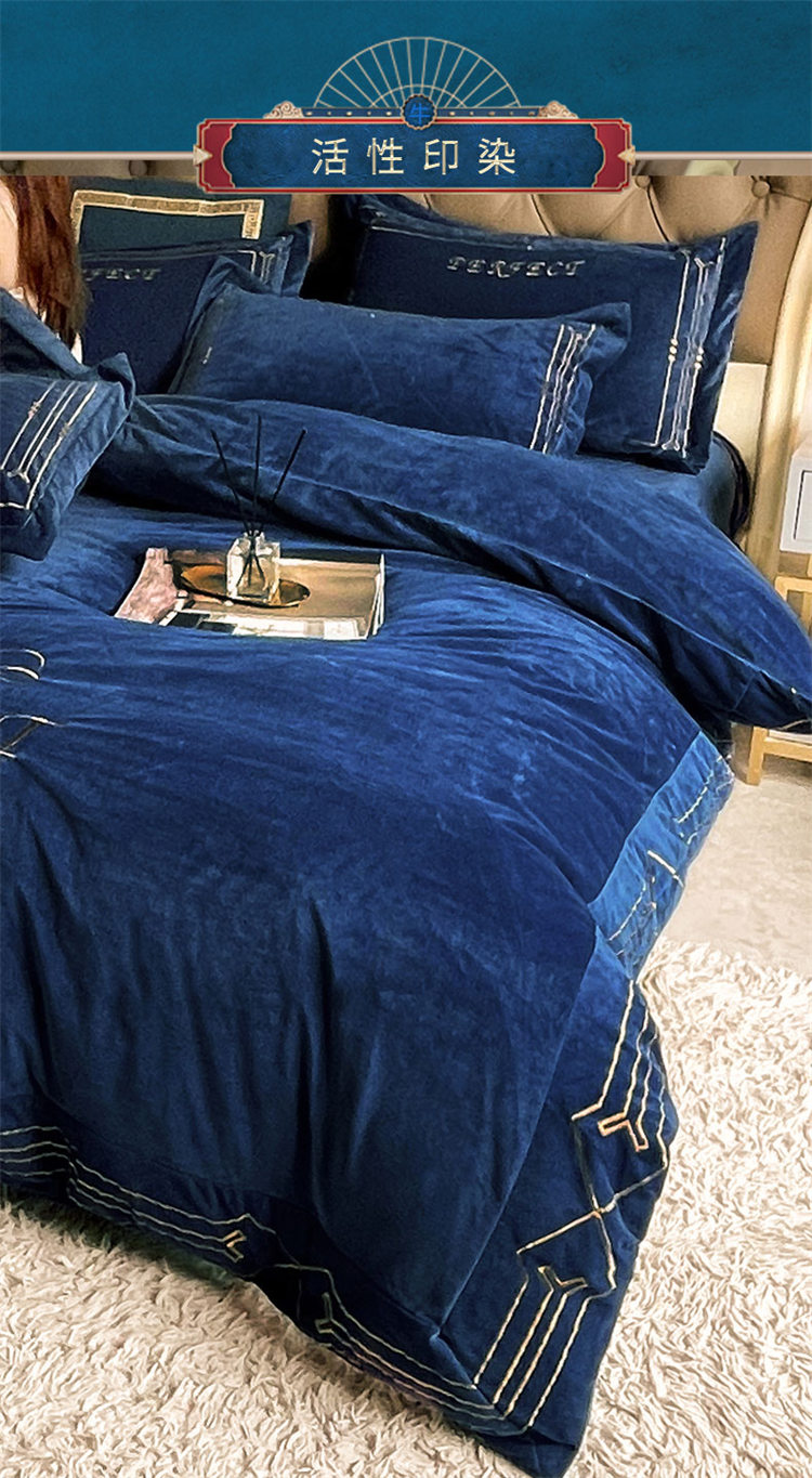 铠畅 2021新款巴黎世家宝宝绒刺绣四件套 黎世家藏蓝